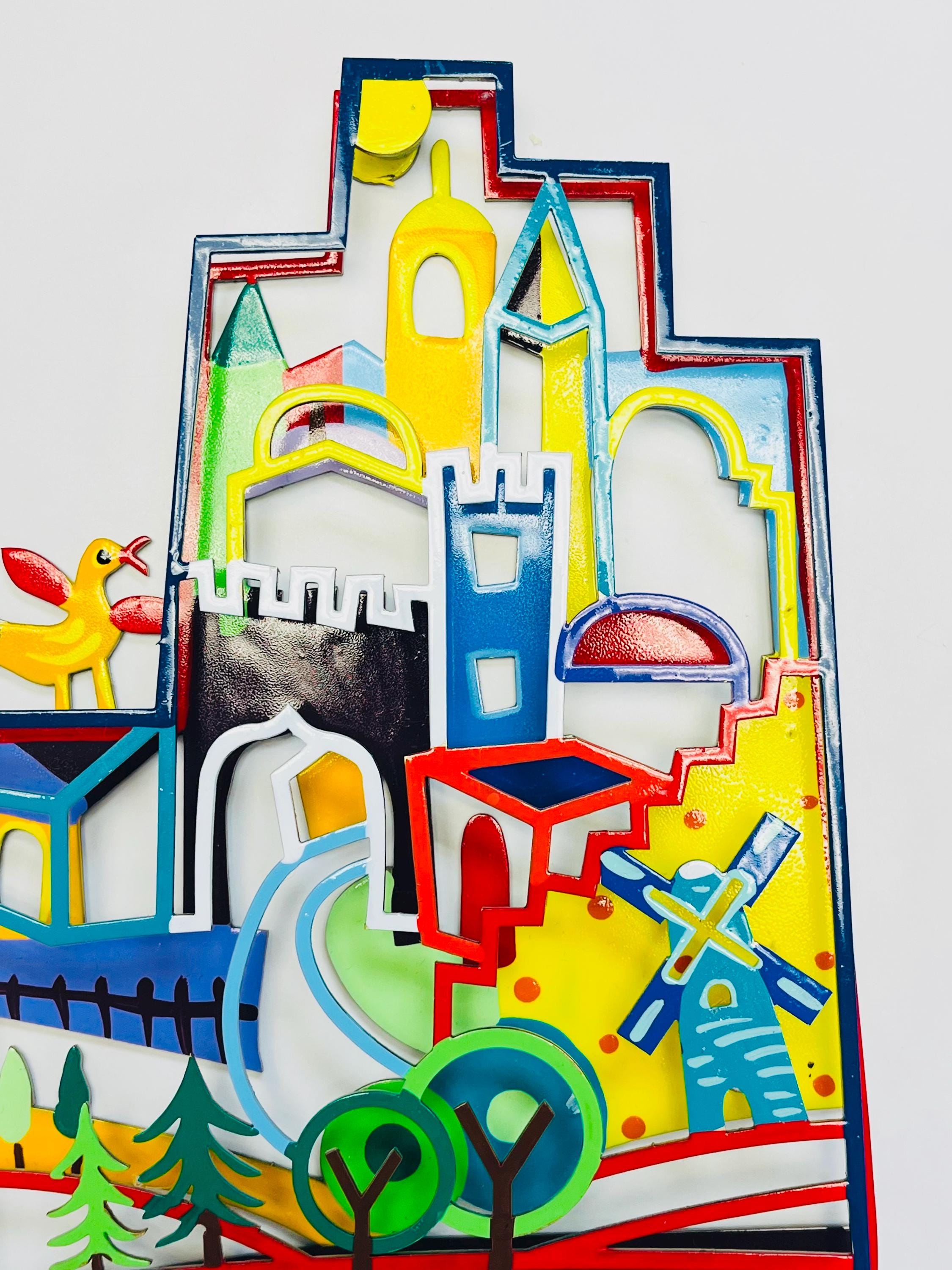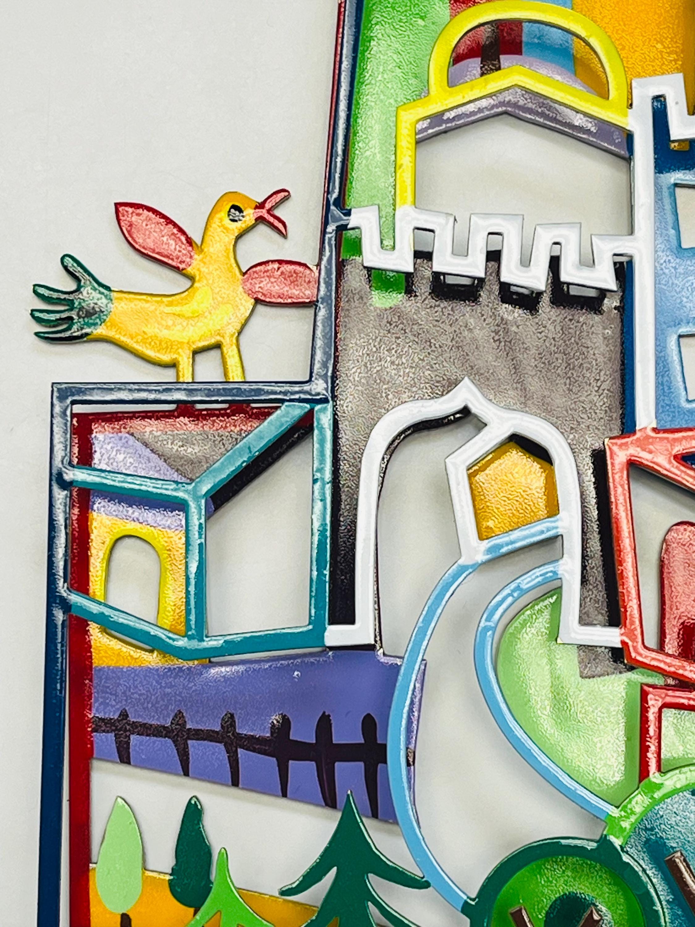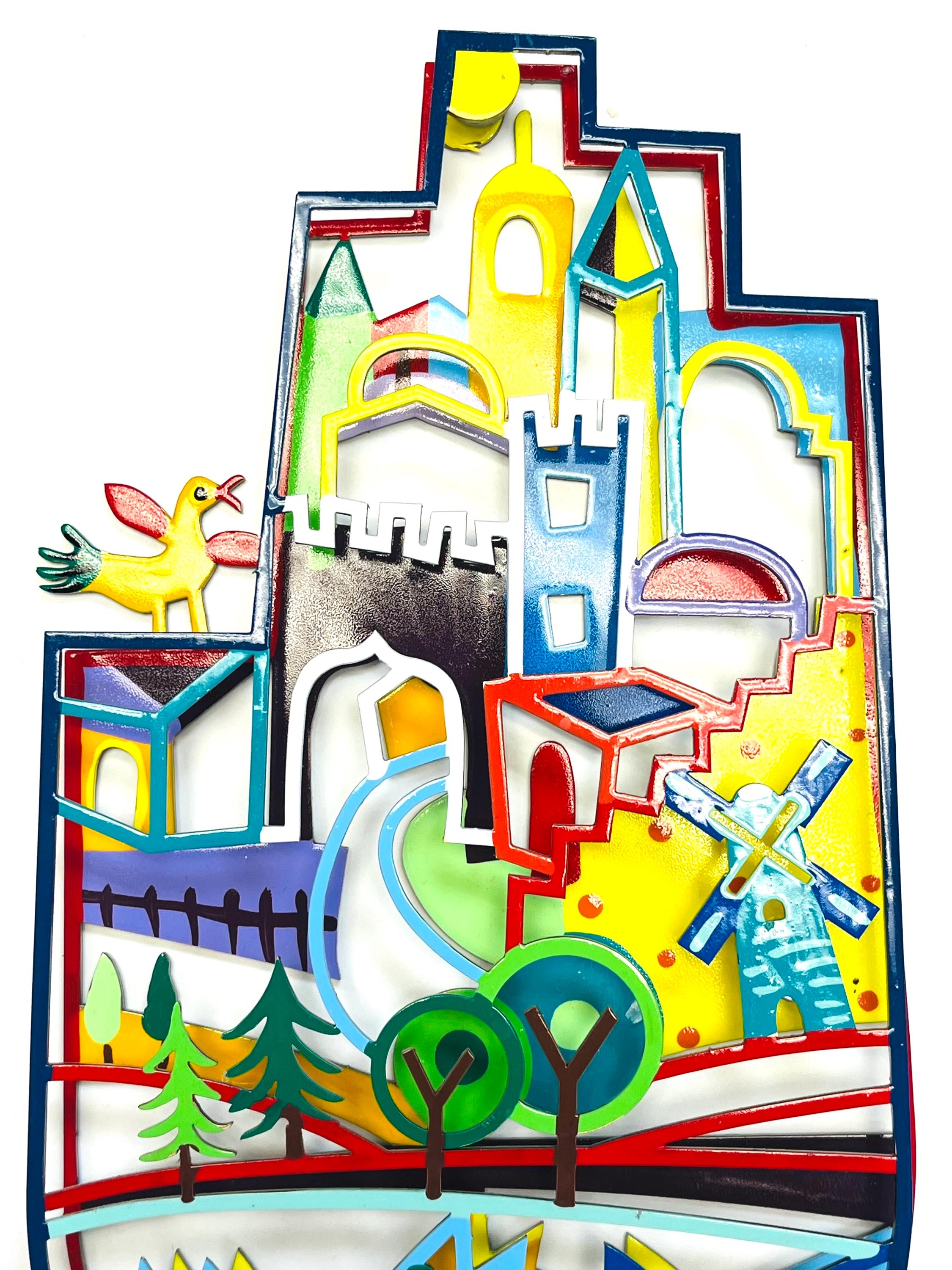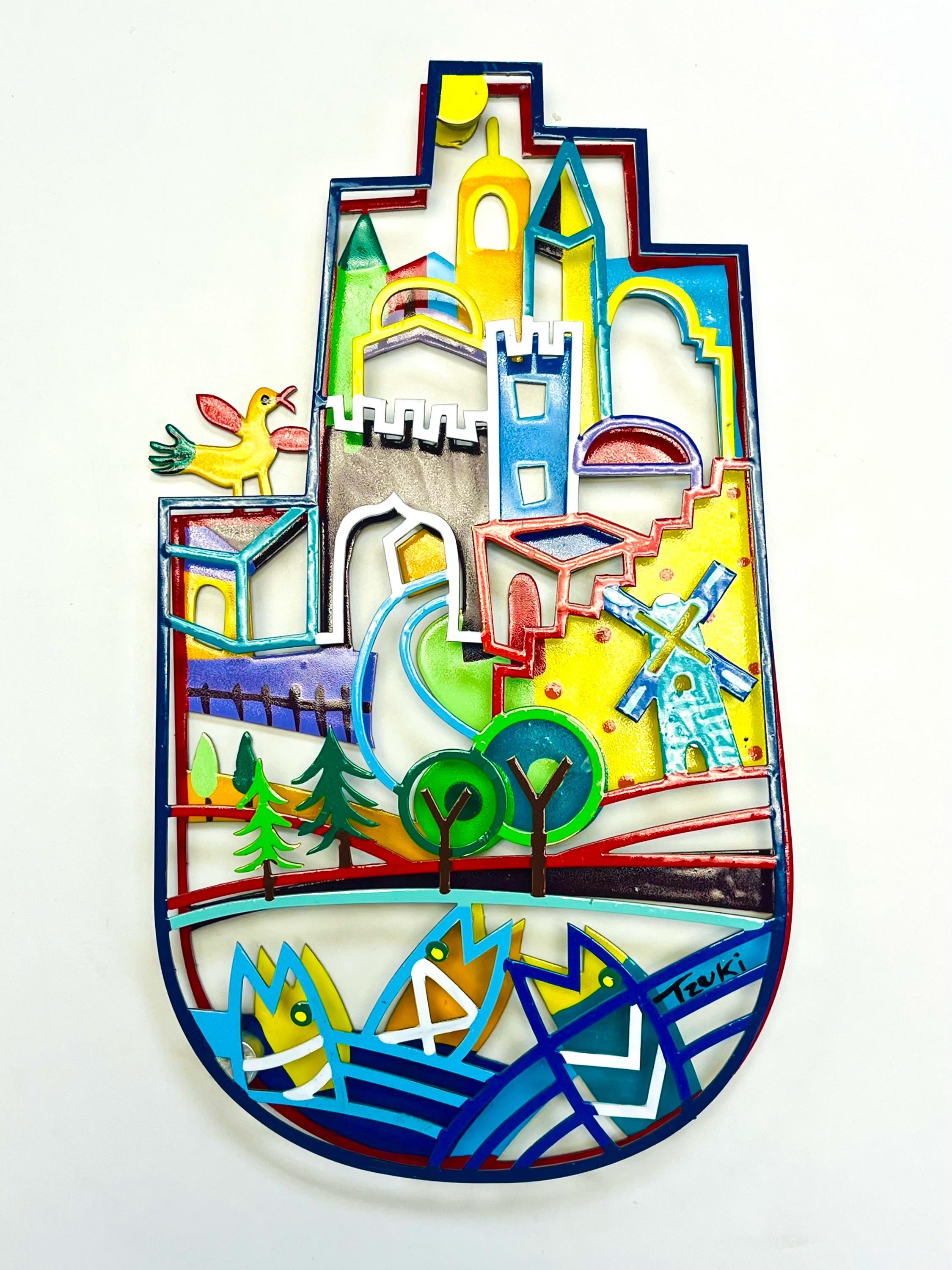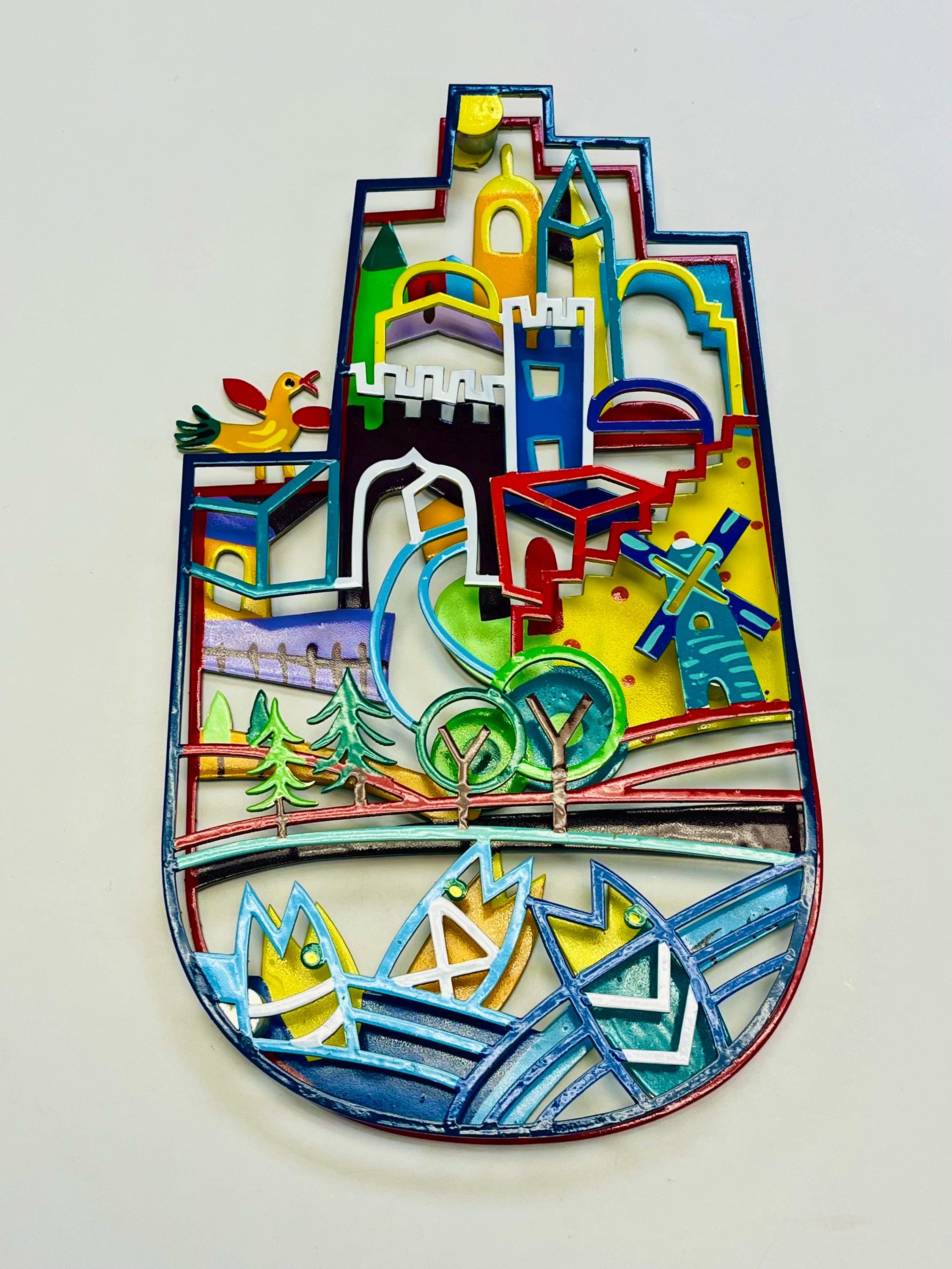 Tzuki Studio Hand Painted Laser Cut "Jerusalem" Hamsa Art 9" x 5" Signed