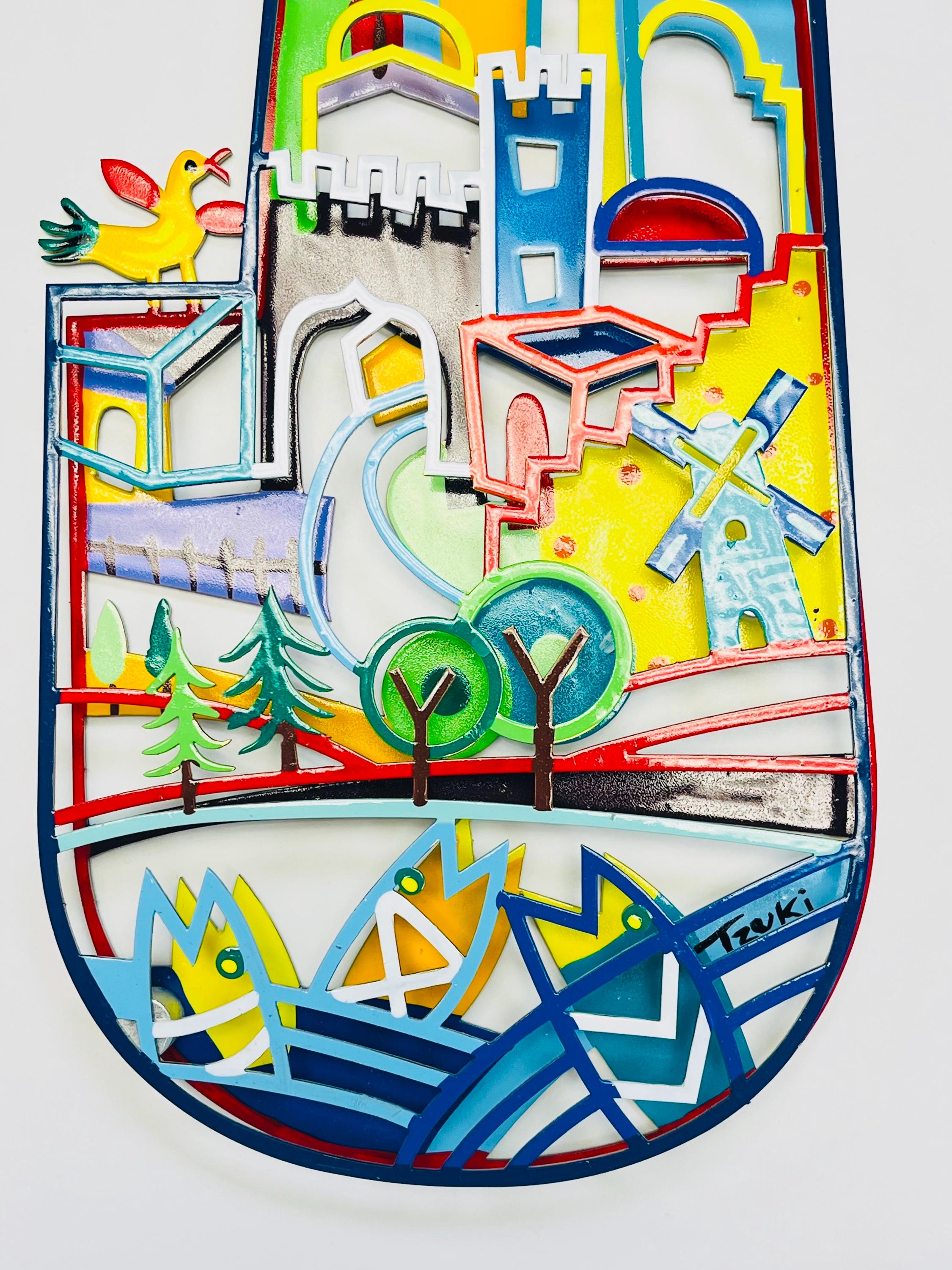 Artist Tzuki's work is sold in galleries and shops worldwide and contributes to Israeli society by providing therapeutic work for elderly organizations.