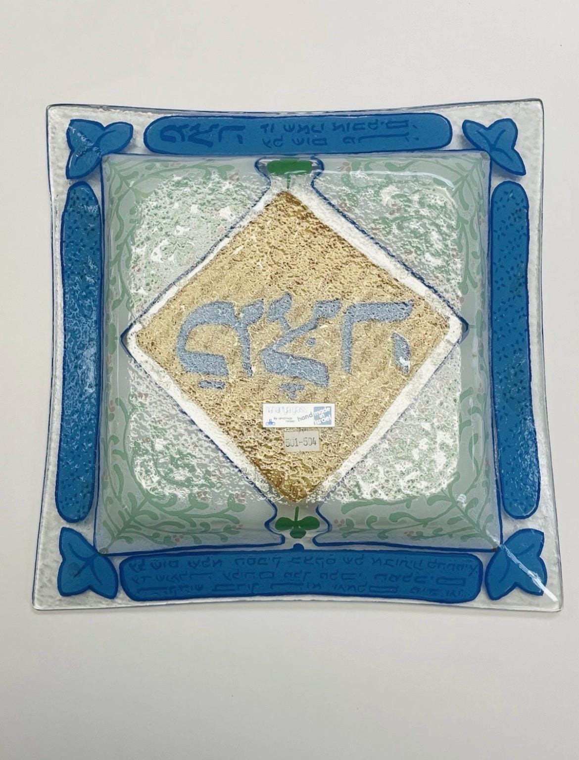 Vintage Jewish Fused Glass Matzah Plate - Tray