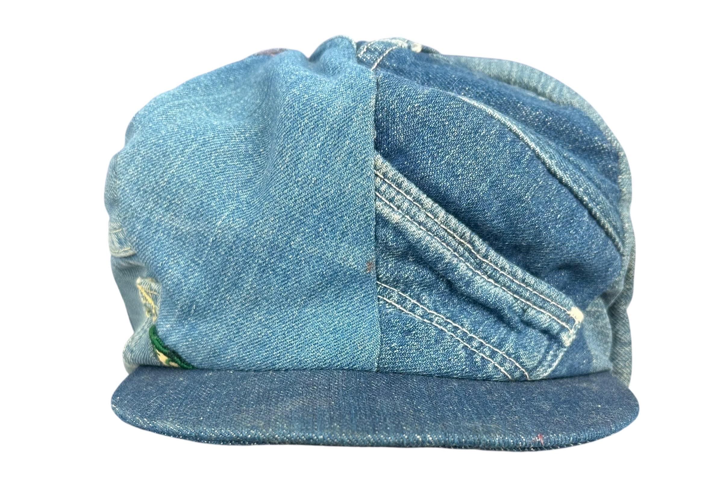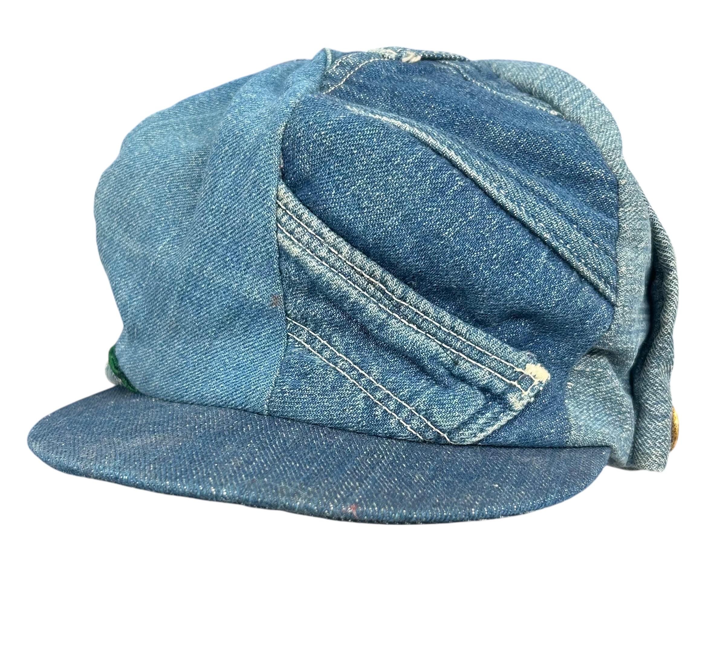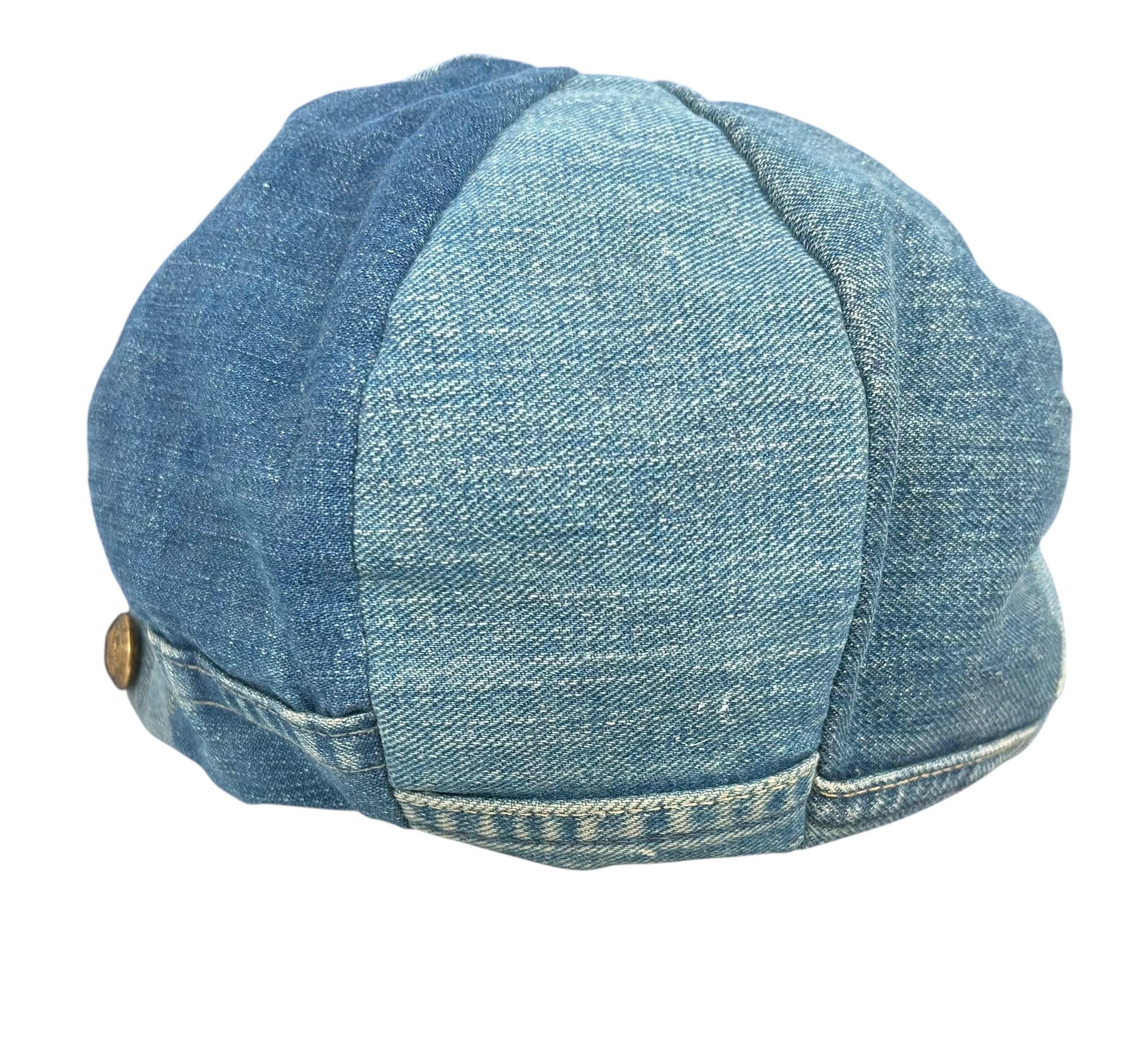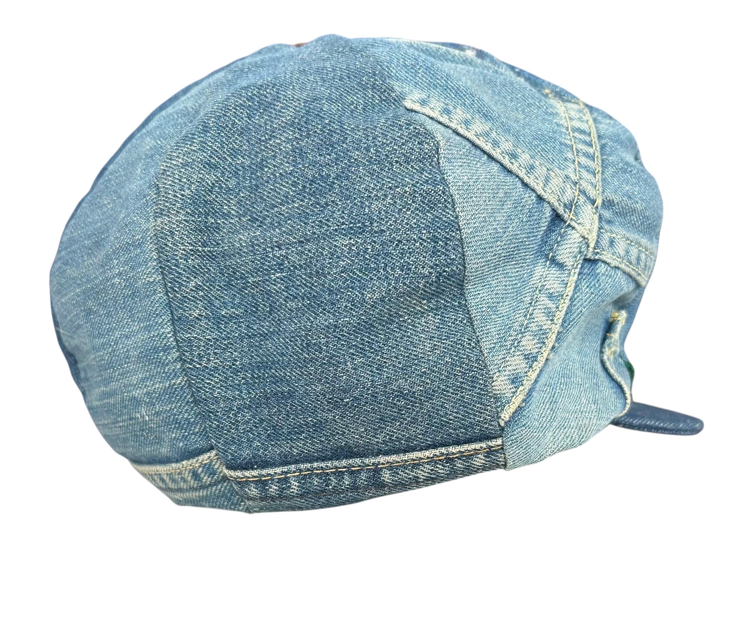 This 7 Panel Newsboy Style Cap is made from Vintage Denim Jeans. And this hat was made back in the 70s so vintage up-cycling.