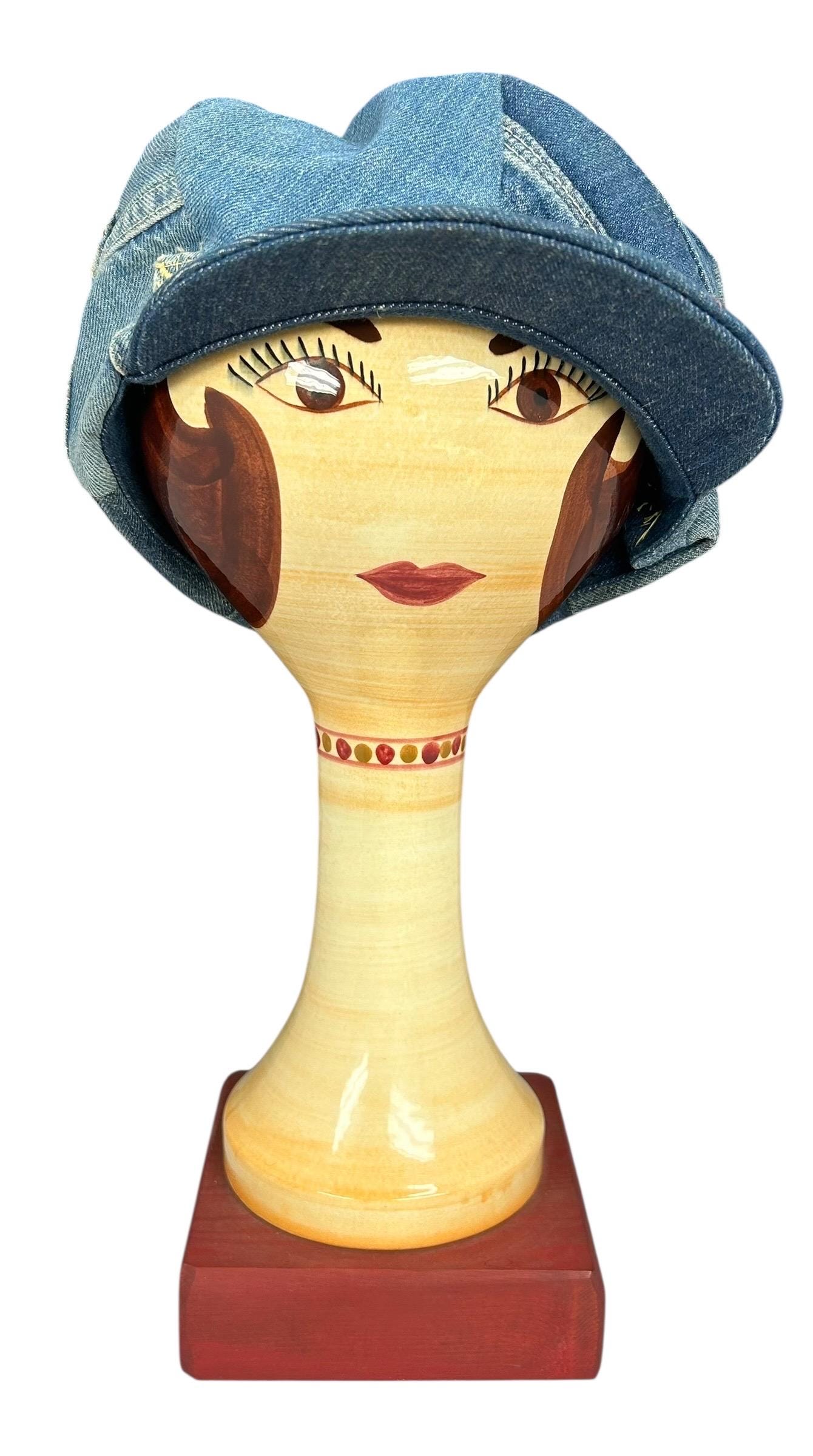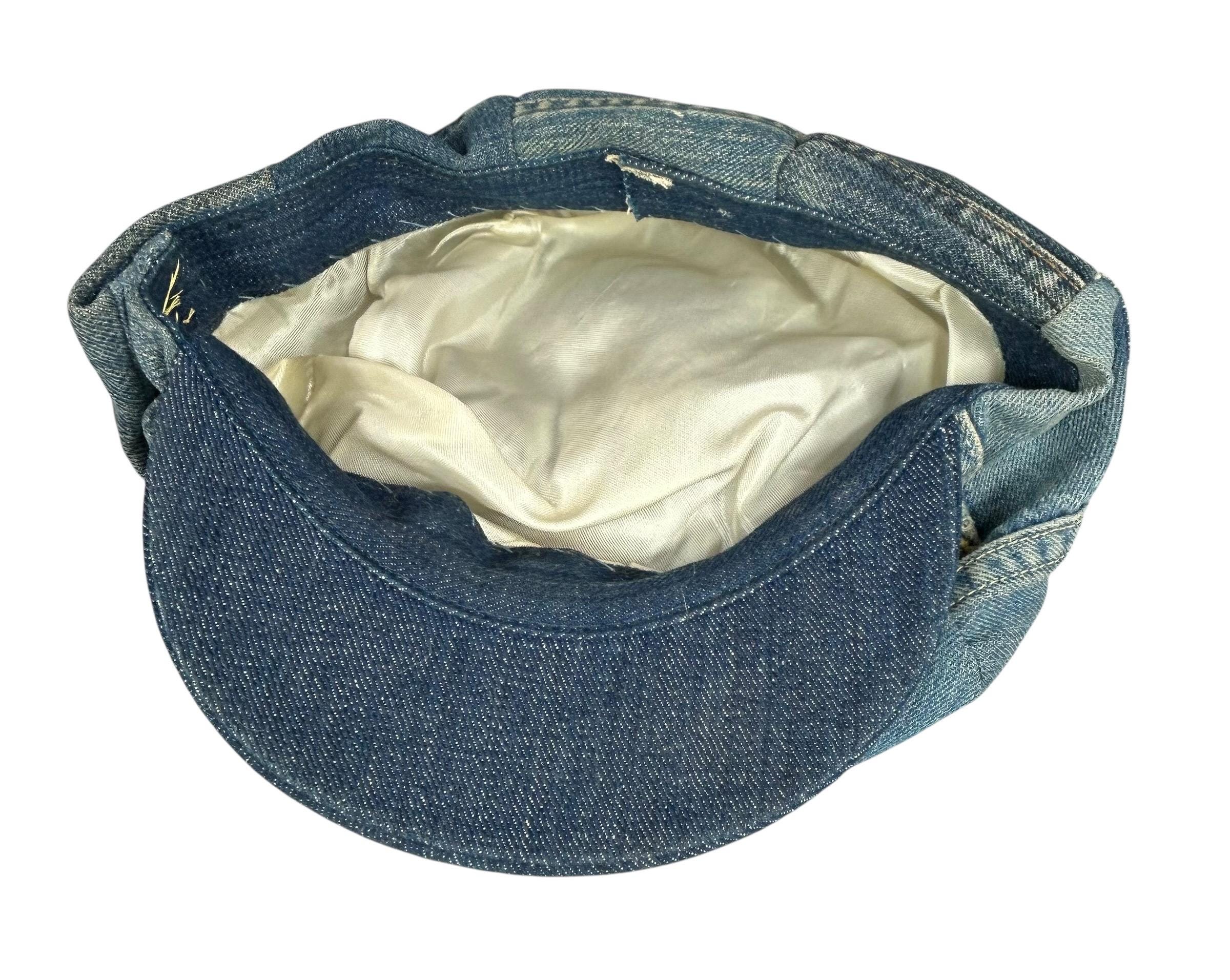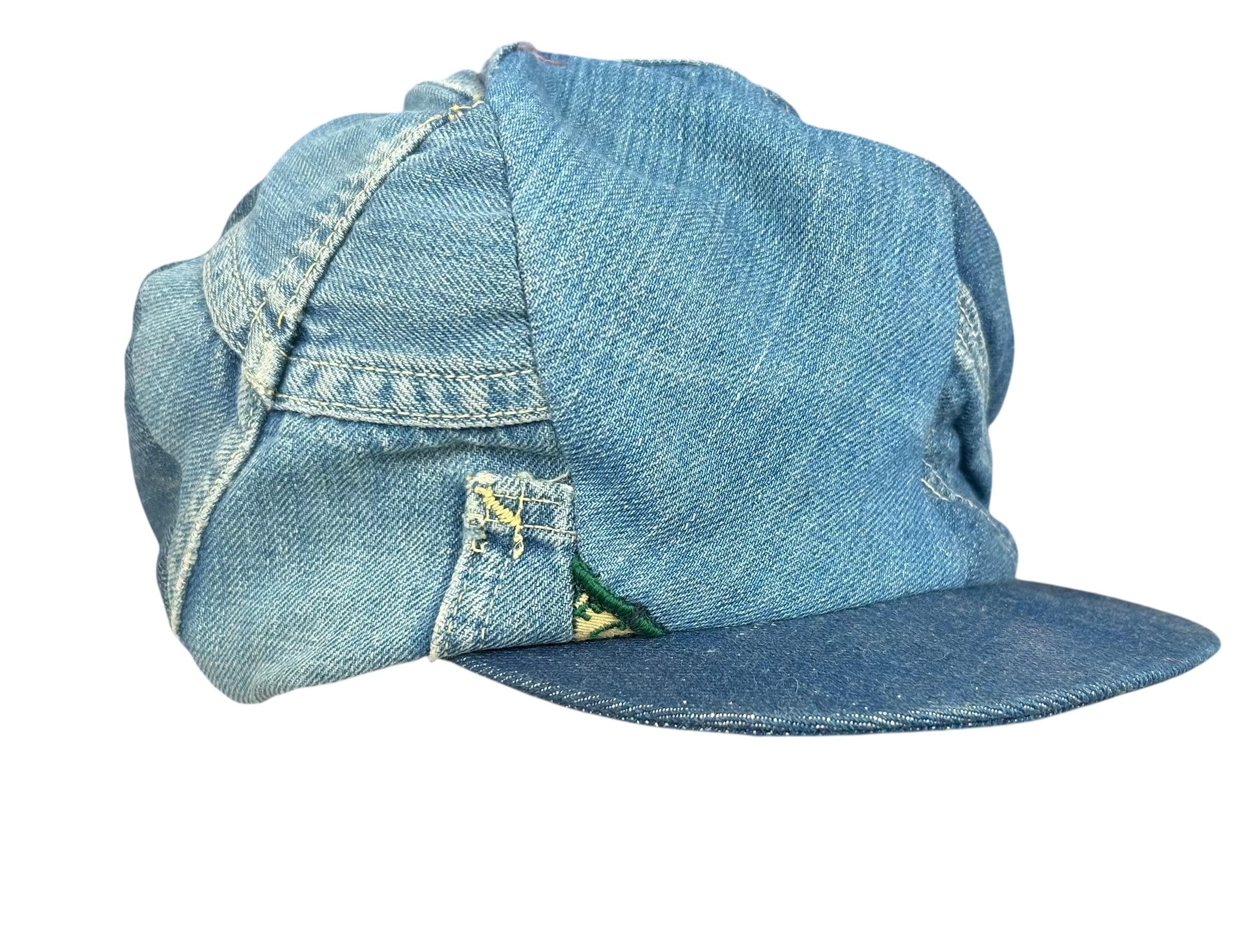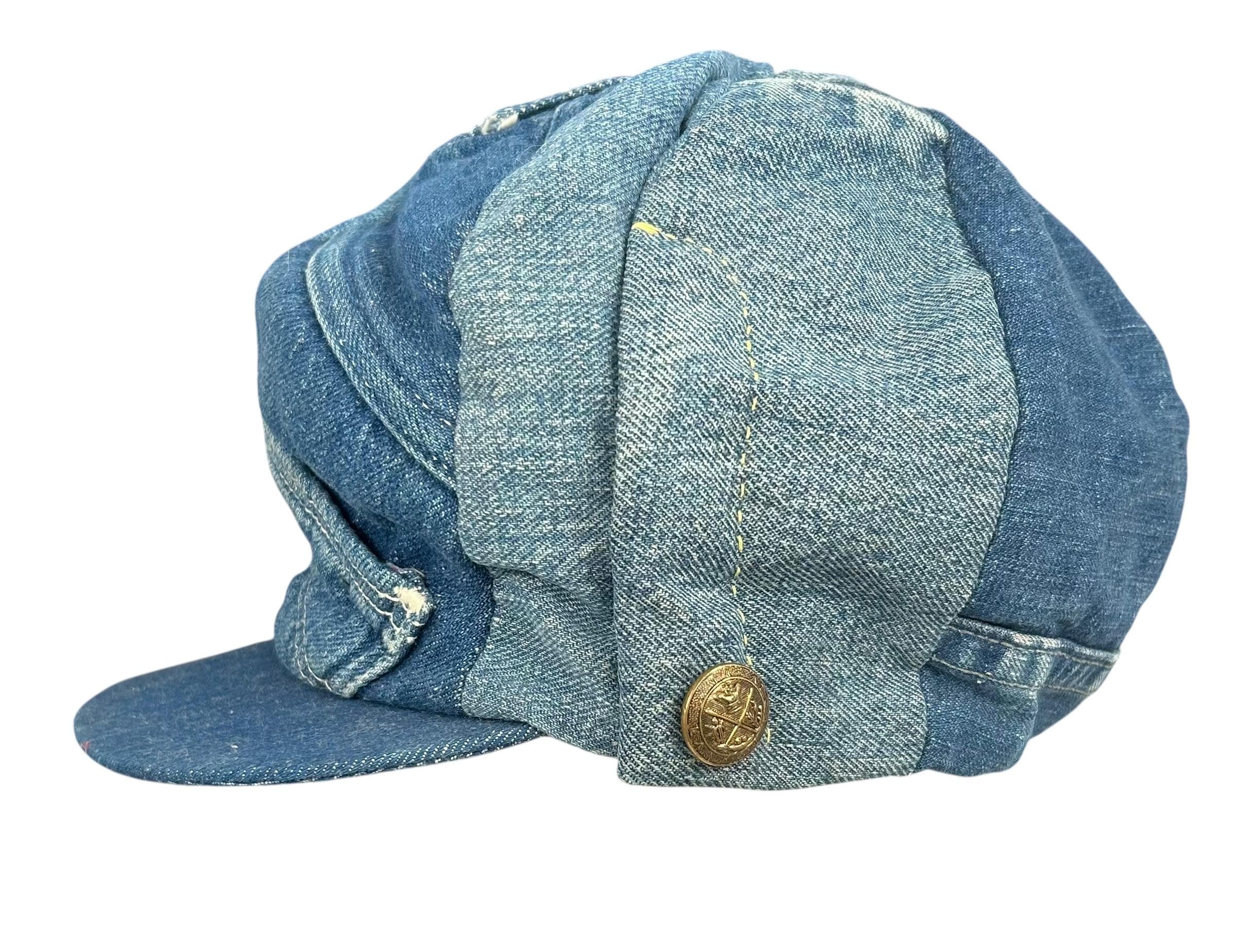This 7 Panel Newsboy Style Cap is made from Vintage Denim Jeans. And this hat was made back in the 70s so vintage up-cycling.