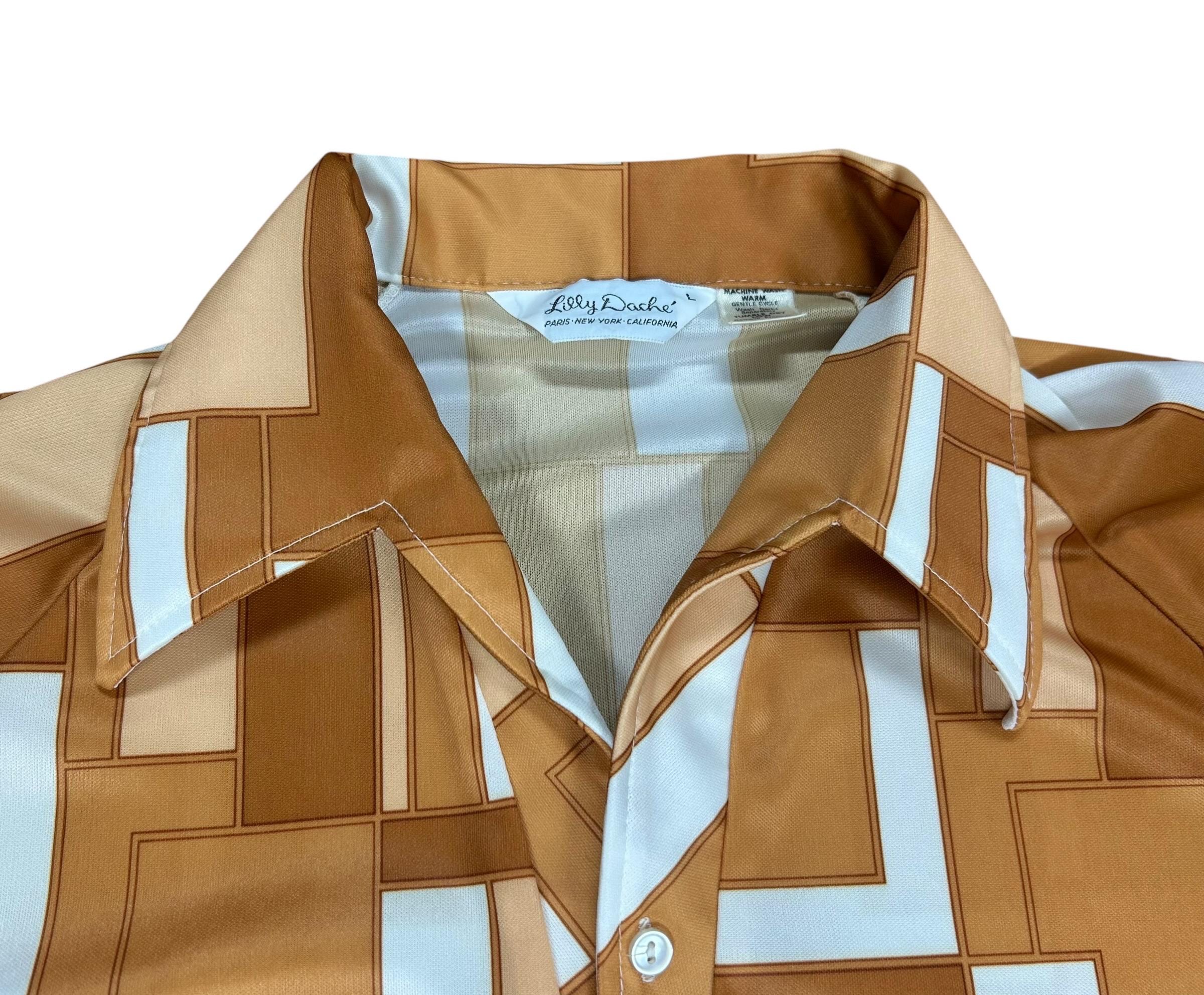 Vintage 1970's Lilly Dache Op Art Patterned Men's Shirt
