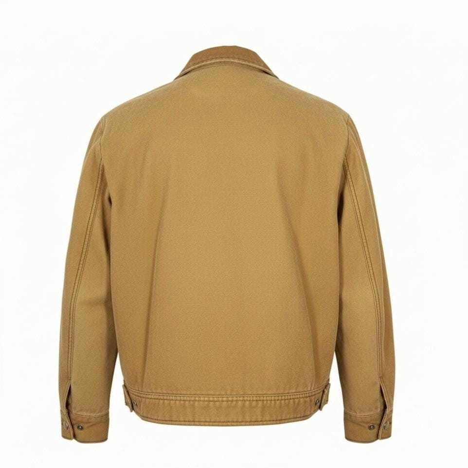 Notice the AI version is more of a caramel color. The actual jacket is a lighter tan.