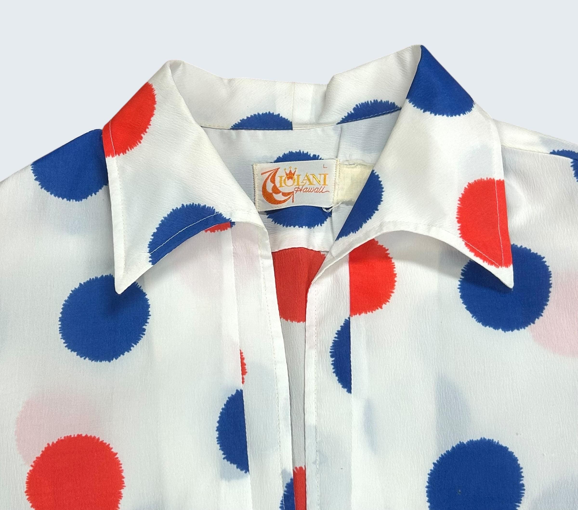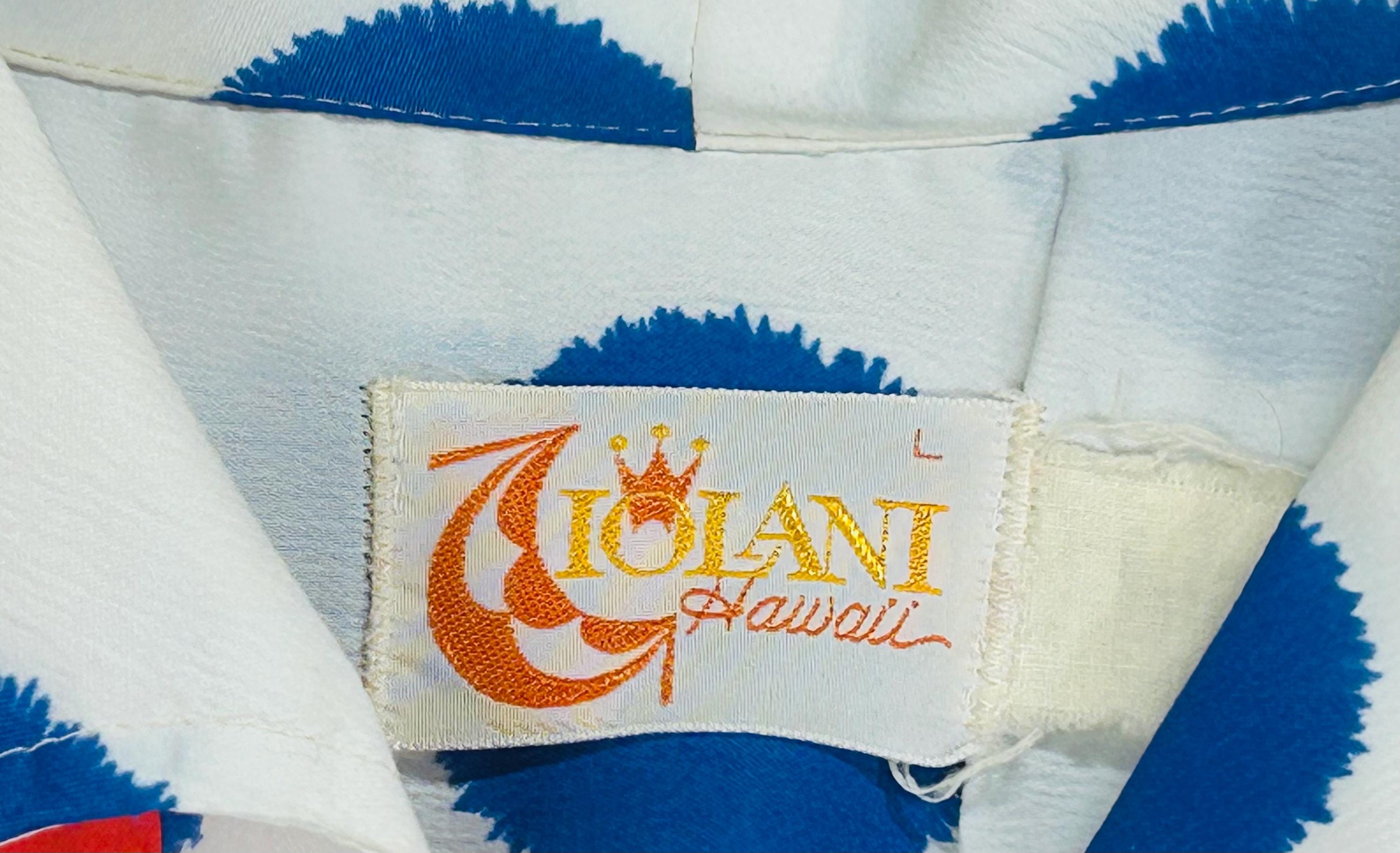 Iolani Hawaii made unique and collectible garments for 70 years, it is a cornerstone of Hawaiian fashion history, renowned for its "Made in Hawaii" heritage and family-led legacy. It started in 1946 as a small factory with dirt floors. Unlike many competitors who moved manufacturing overseas to cut costs, Iolani maintained a strict commitment to local production. The tag in this shirt dates it to the late 1960's mod era.