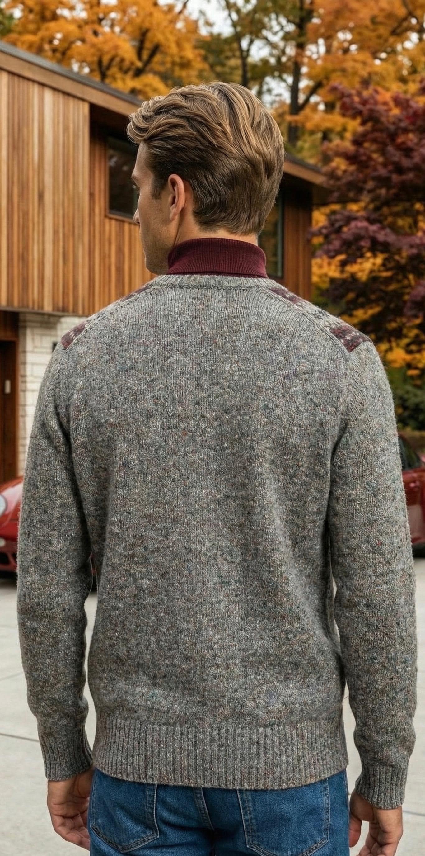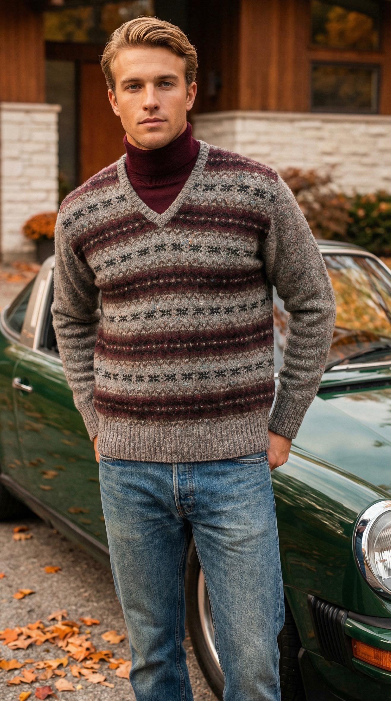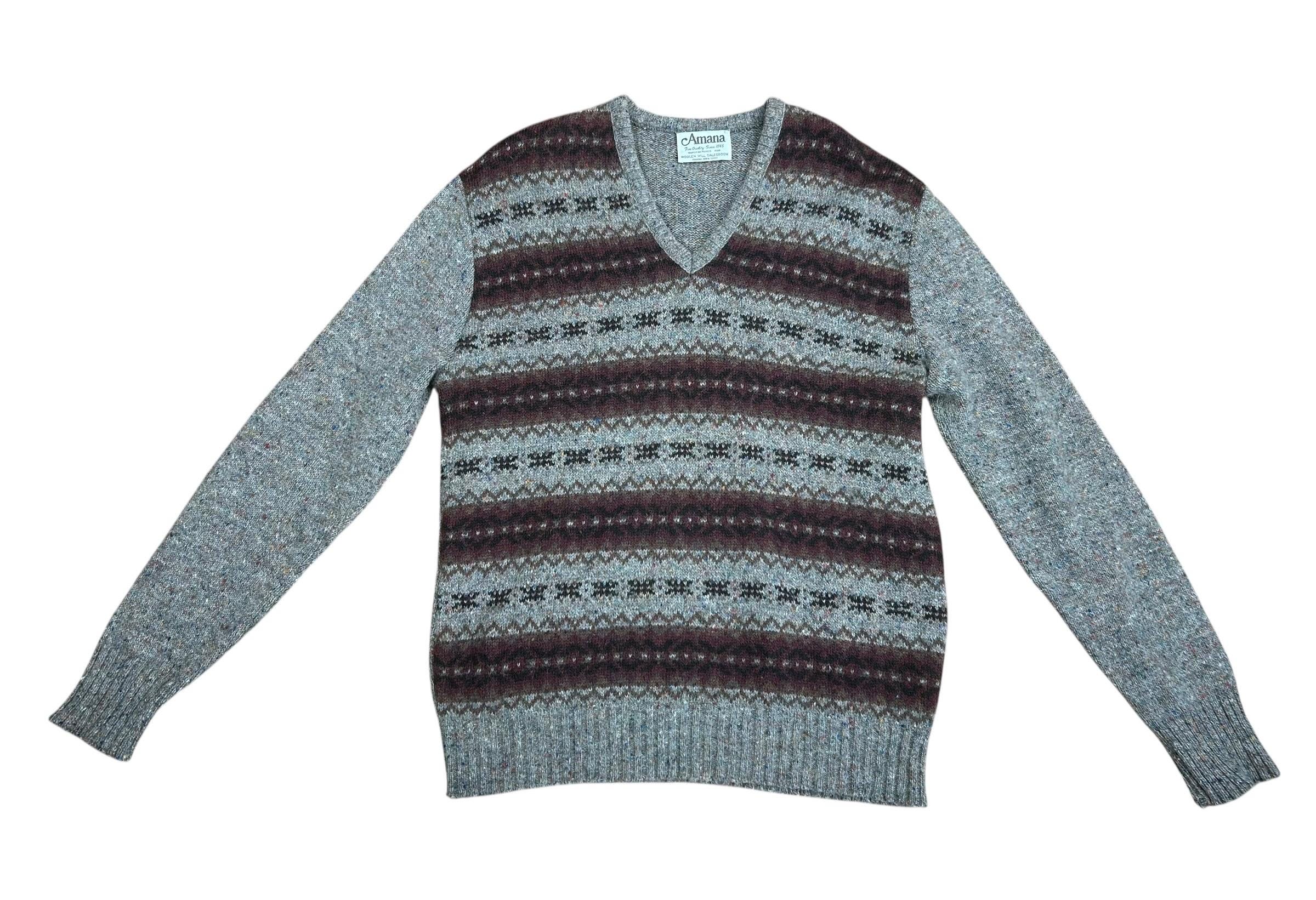 Vintage 1970's / 80's Men's Amana Wool Gray Colorful Speckled Fair Isle Sweater