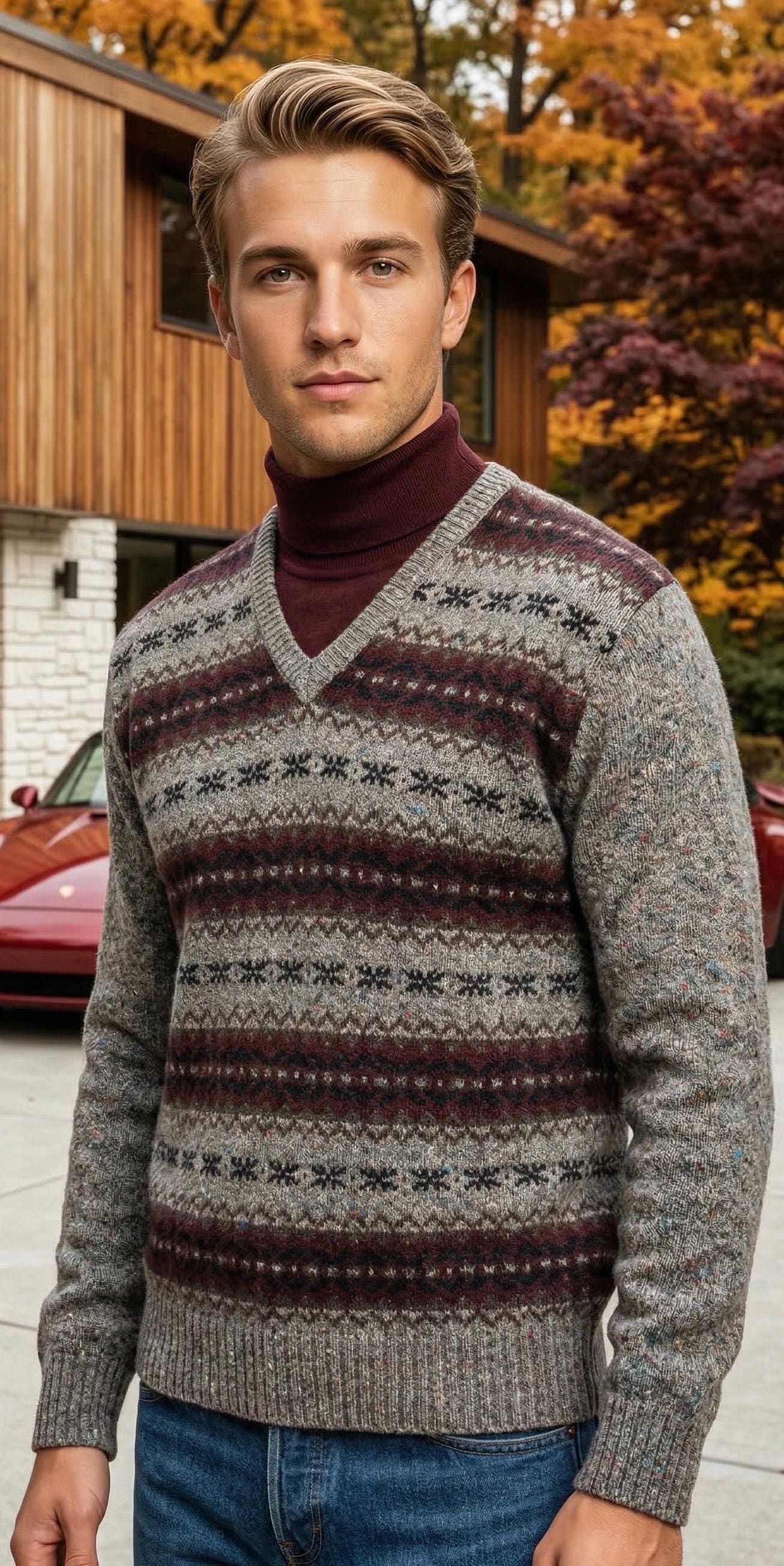 Gray with a classic Nordic fair isle pattern.