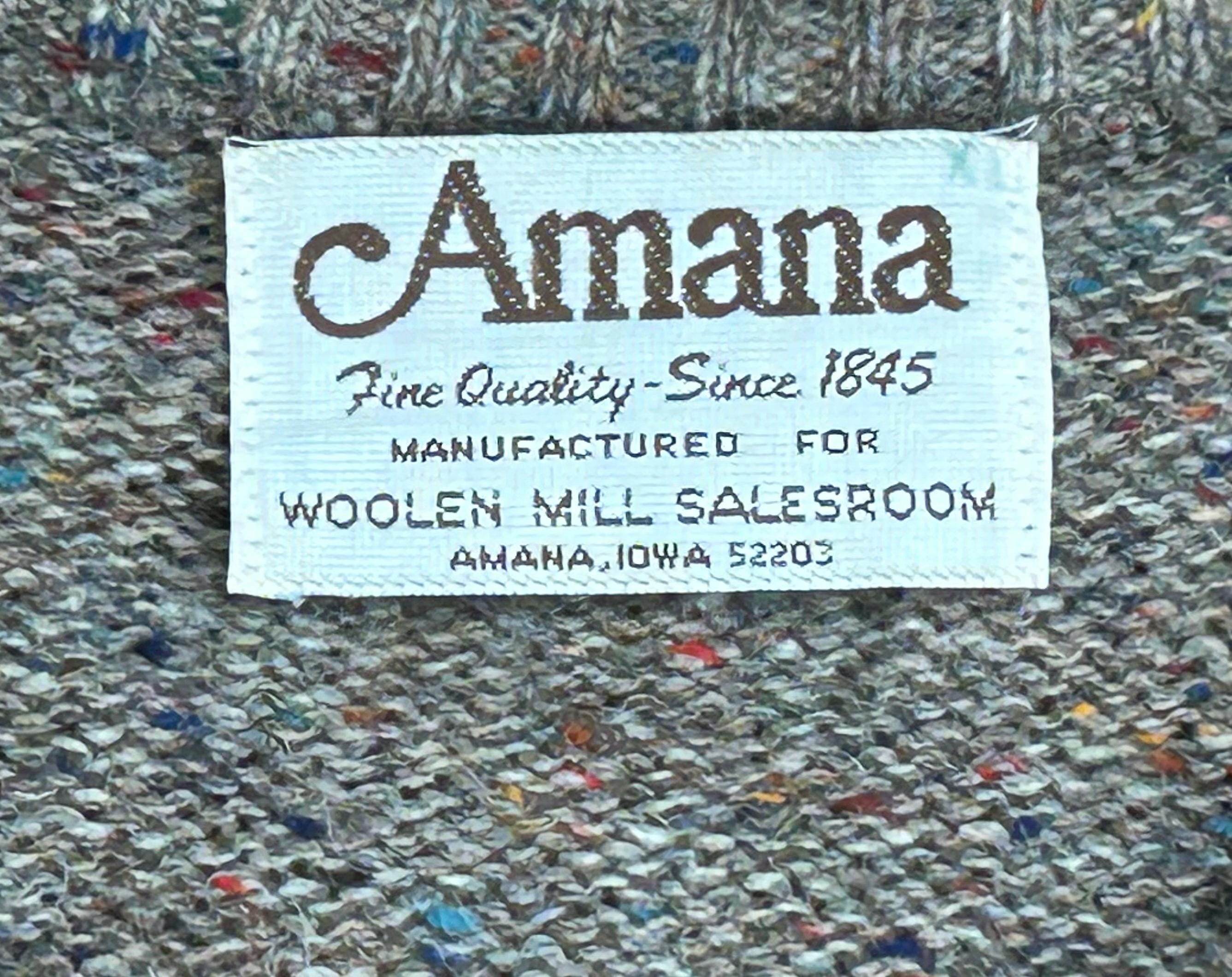 This sweater is from the Amana Woolen Mill Salesroom in Iowa. This was the central hub for where their apparel was sold. During the 70's / 80's the store became a tourist attraction, serving hundreds of thousands of guests annually, which is when this awesome sweater must have been purchased.