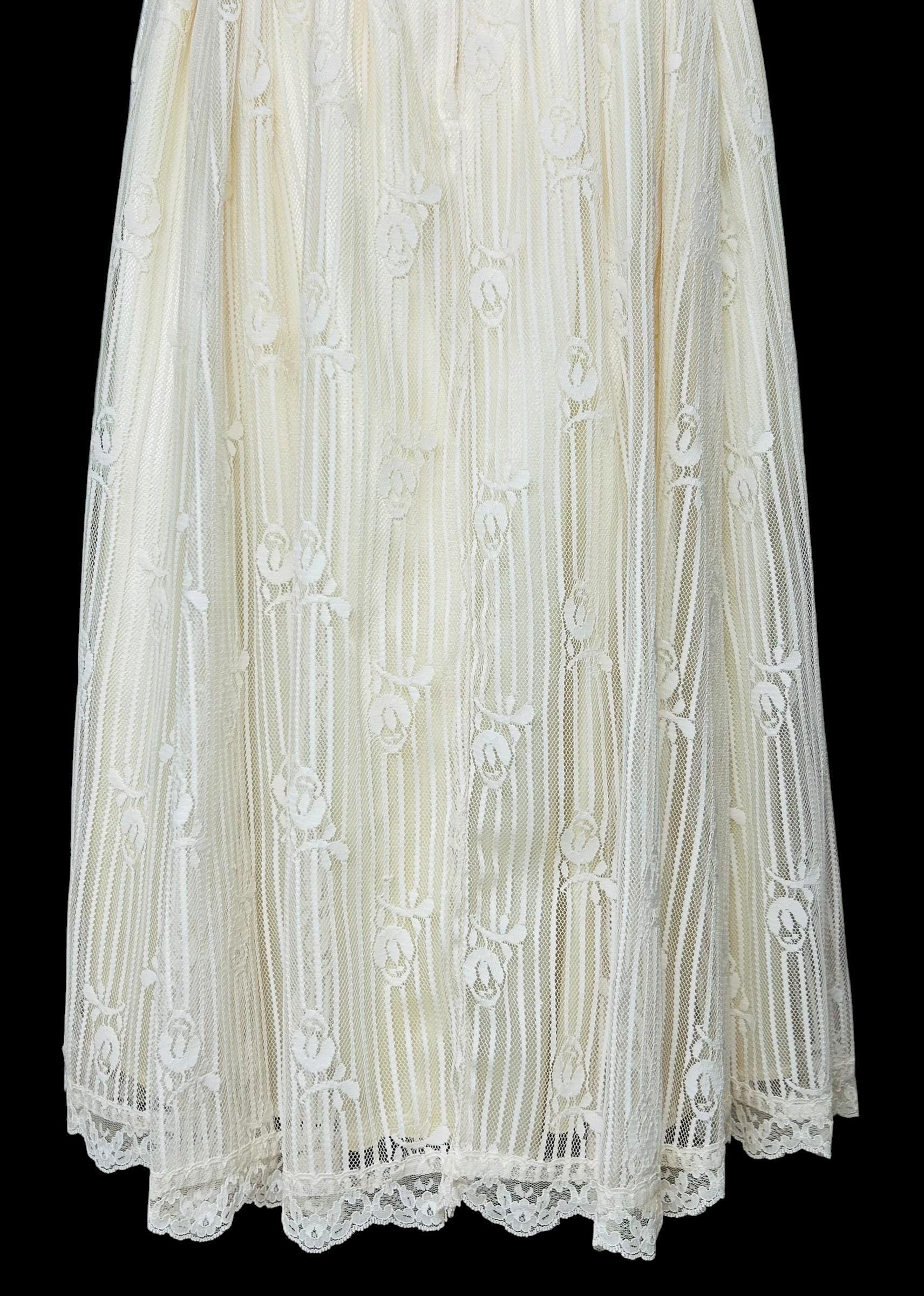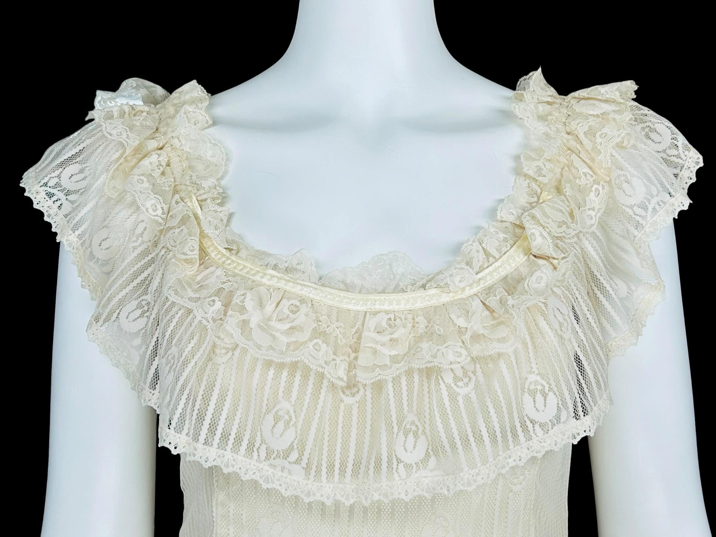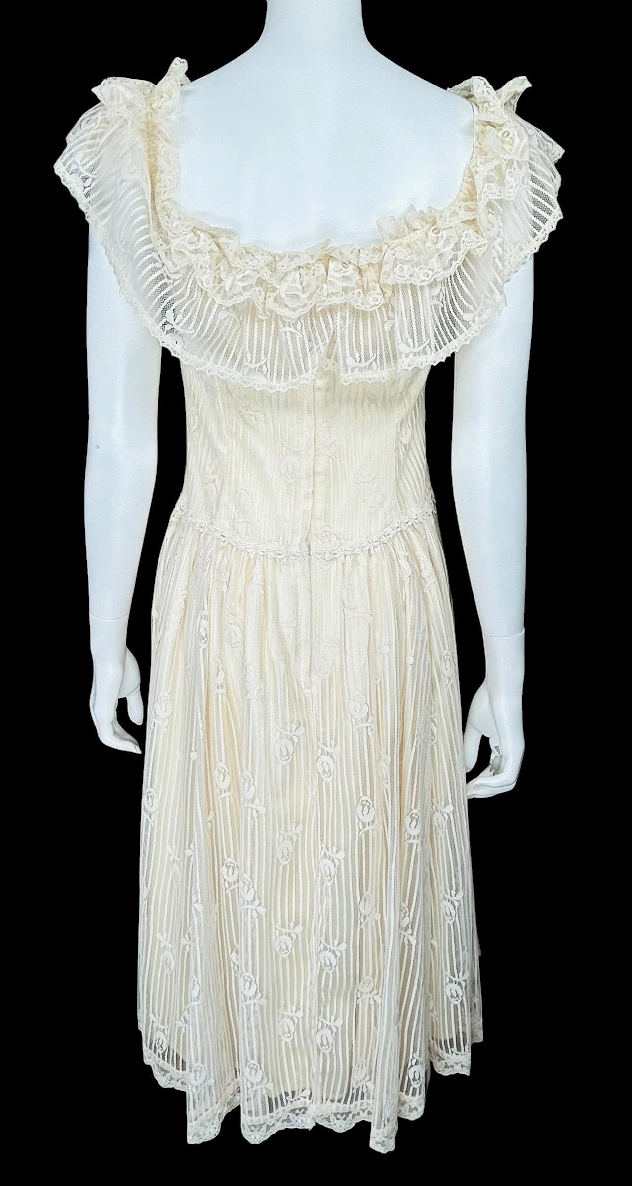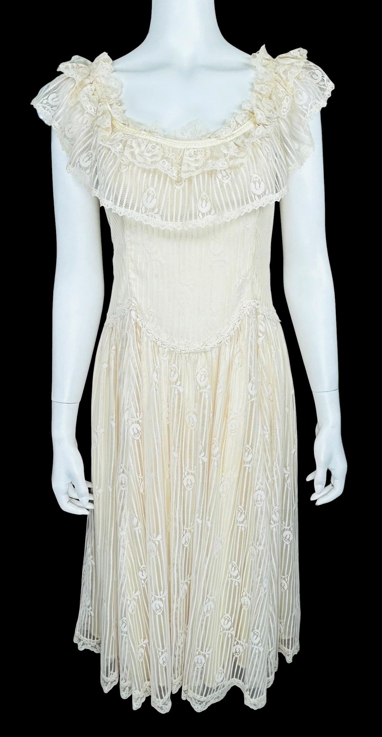 Vintage 70s / 80s Gunne Sax cream lace gown with a ruffled neckline perfect for a formal occasion or as a wedding Dress.