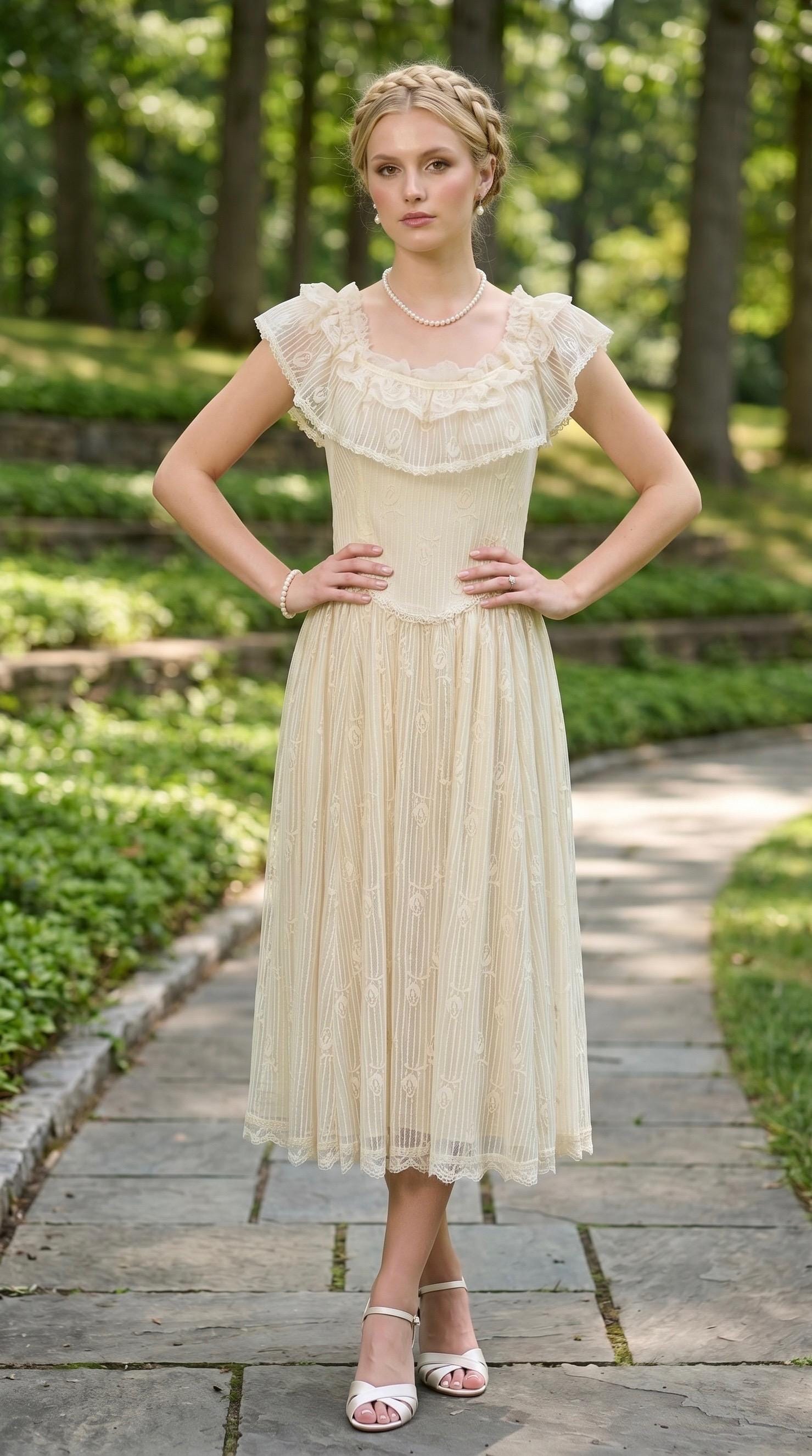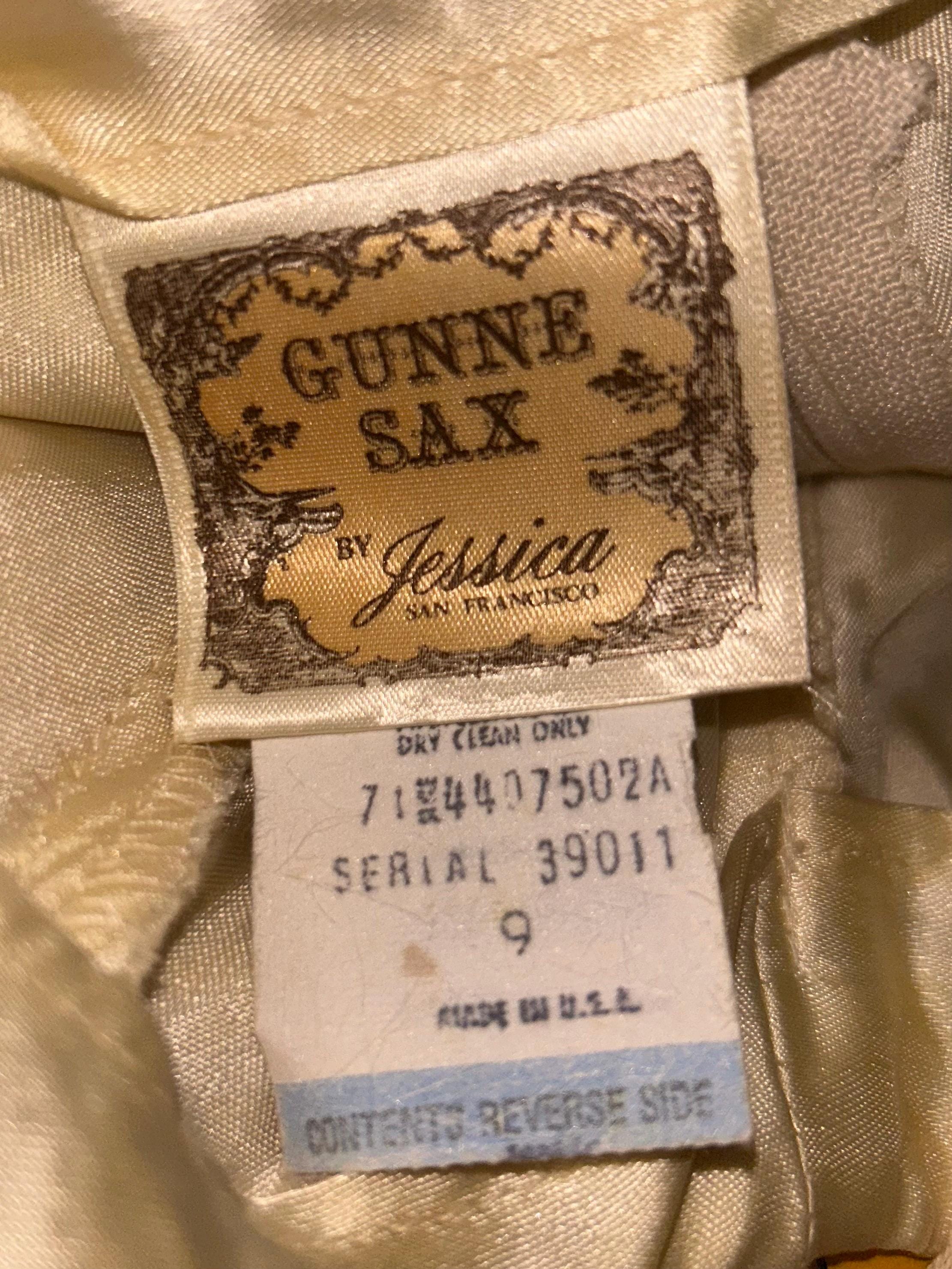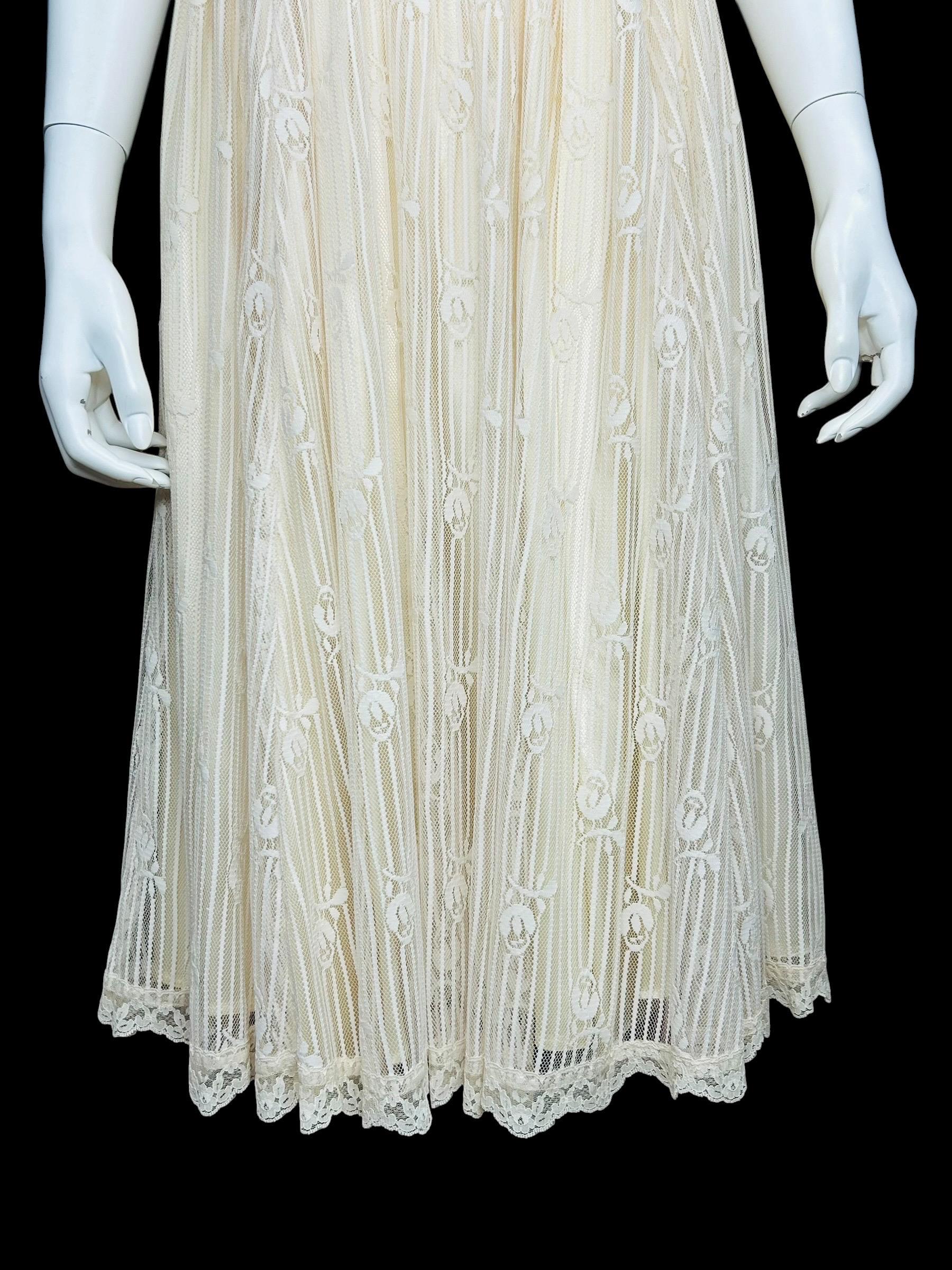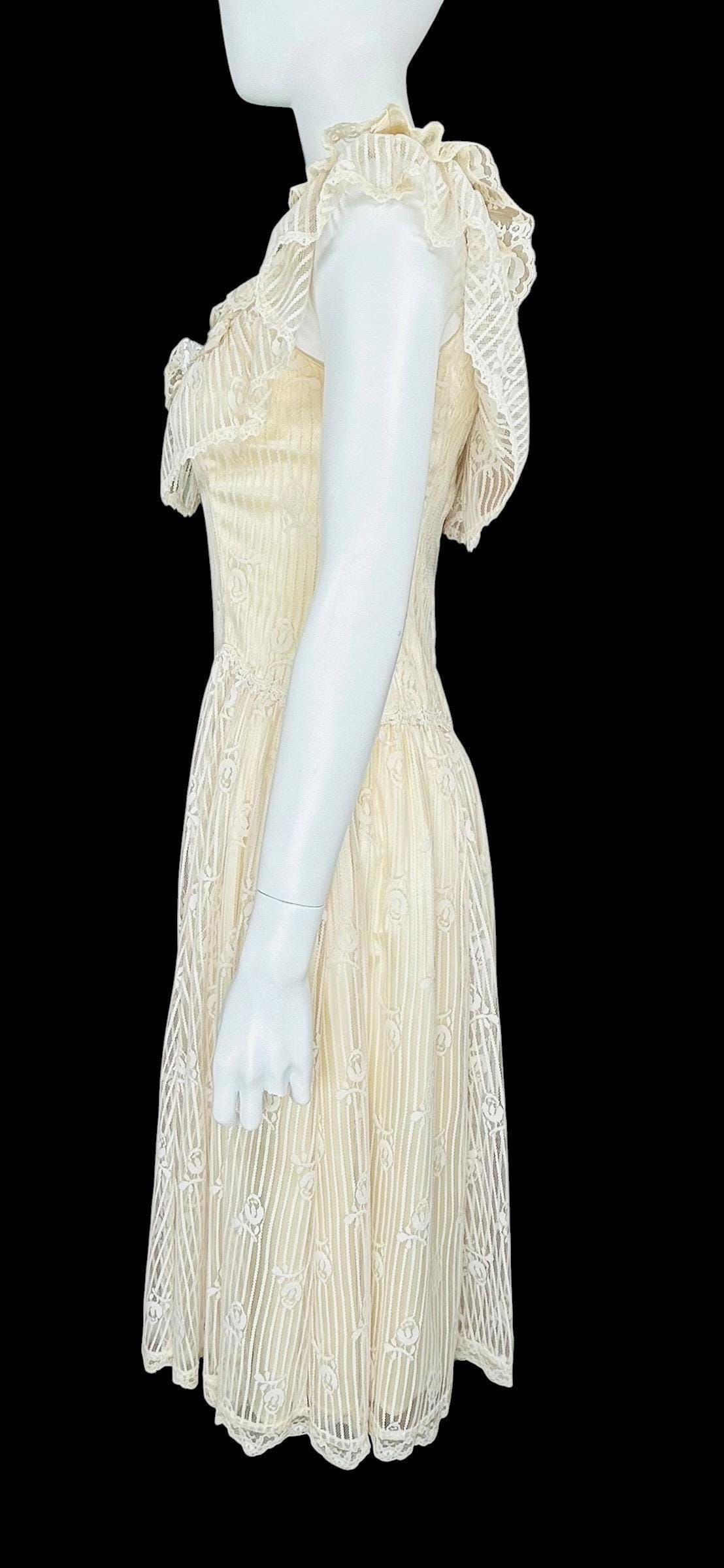 Vintage 70s / 80s Gunne Sax cream lace gown with a ruffled neckline perfect for a formal occasion or as a wedding Dress.