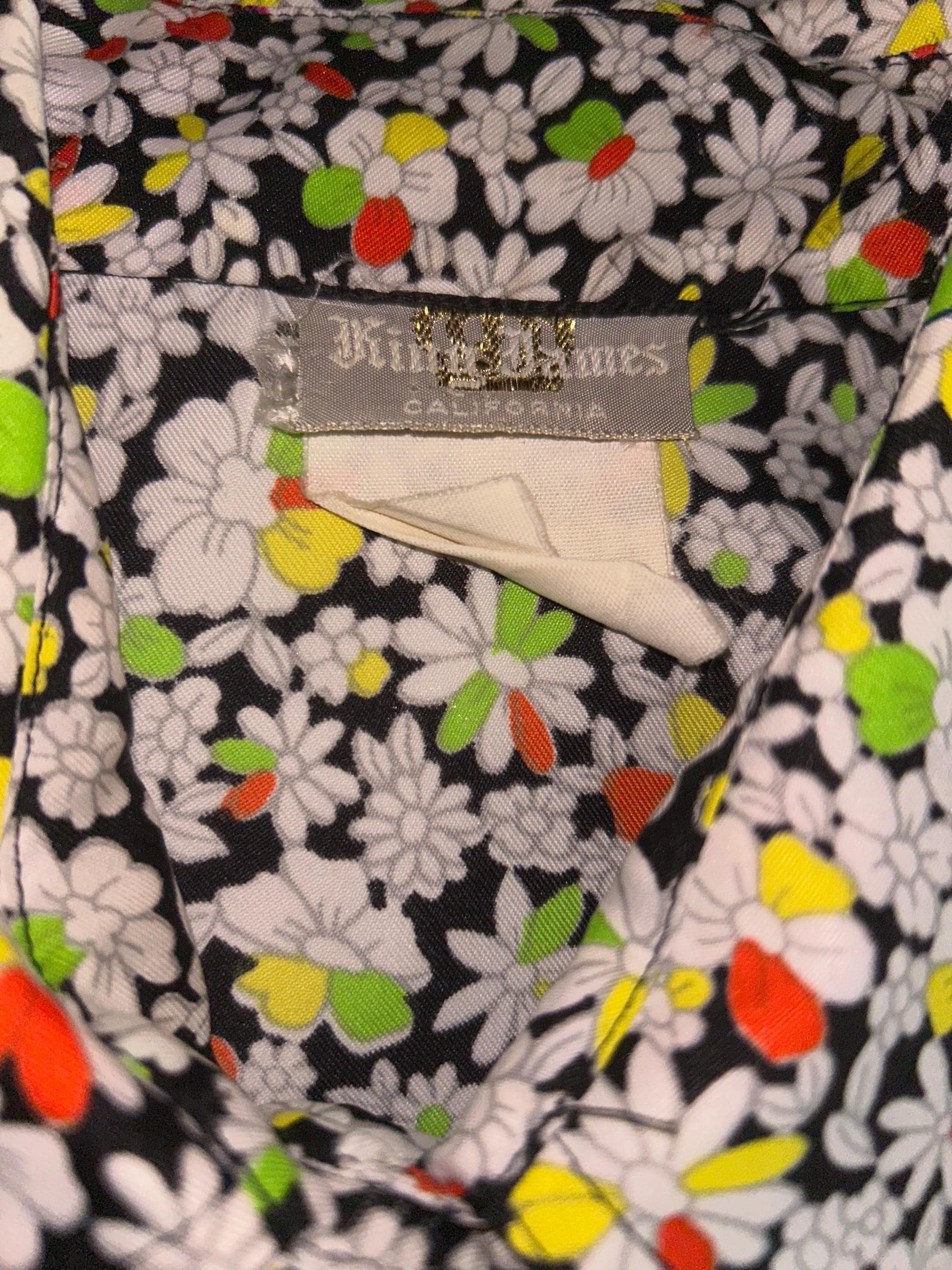 King James of California was active during the late 60's and 70's. Known for its mod and disco era styles, the brand often utilized bold, vibrant prints and synthetic fabrics like polyester.
