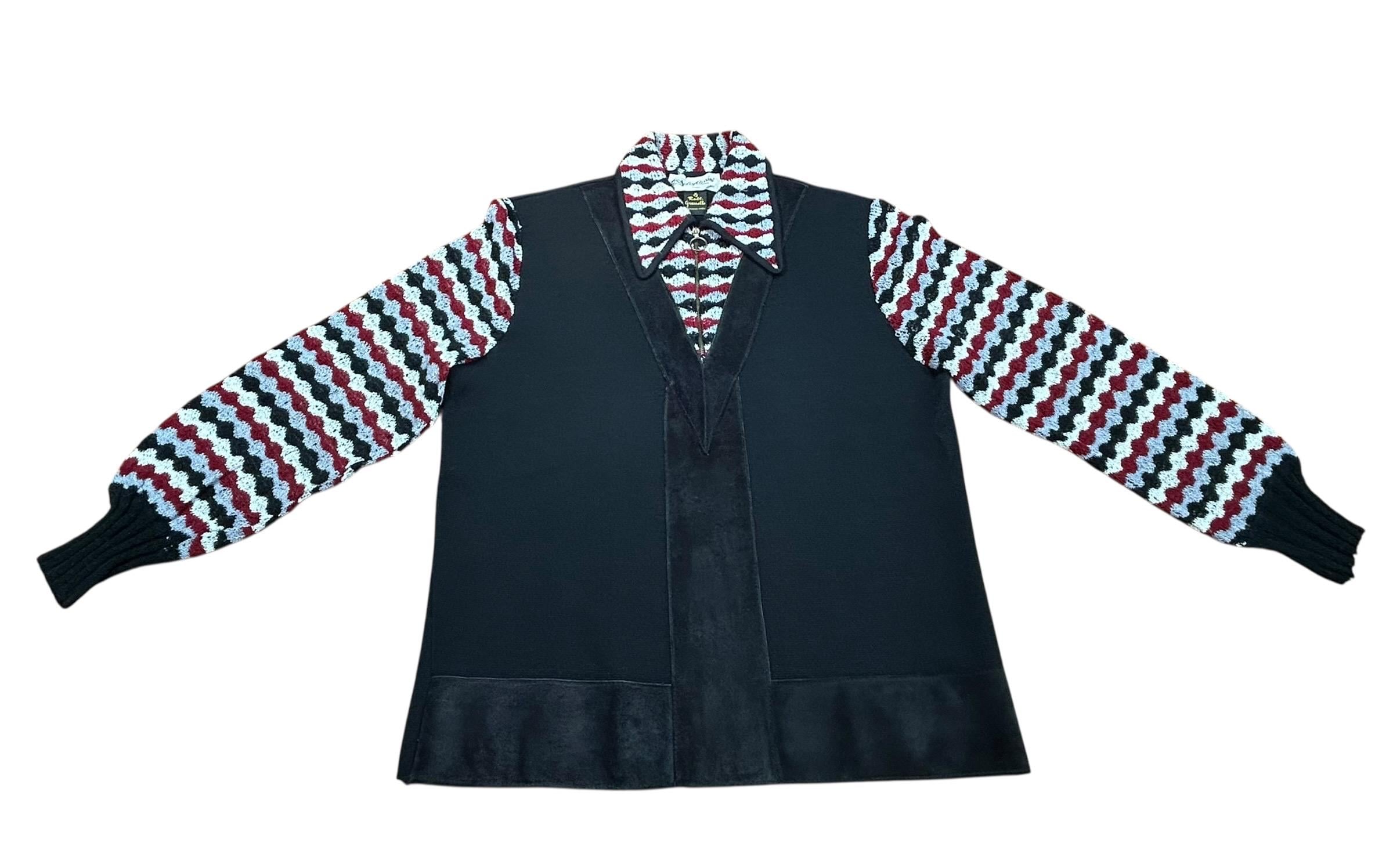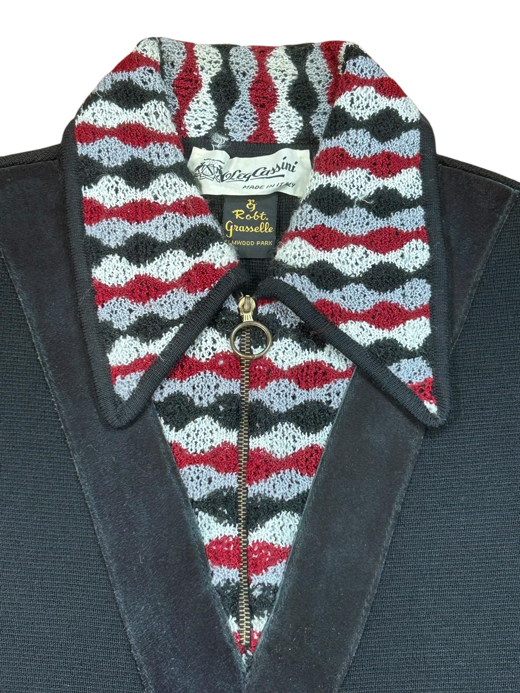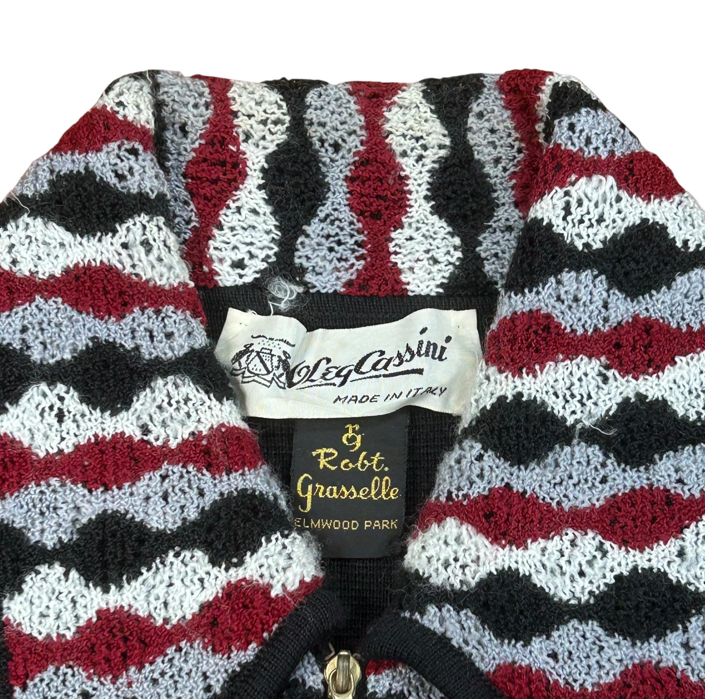 Amazing Vintage 1960's COUTURE DESIGNER ~ OLEG CASSINI Wool & Flame Knit Zippered Polo Sweater