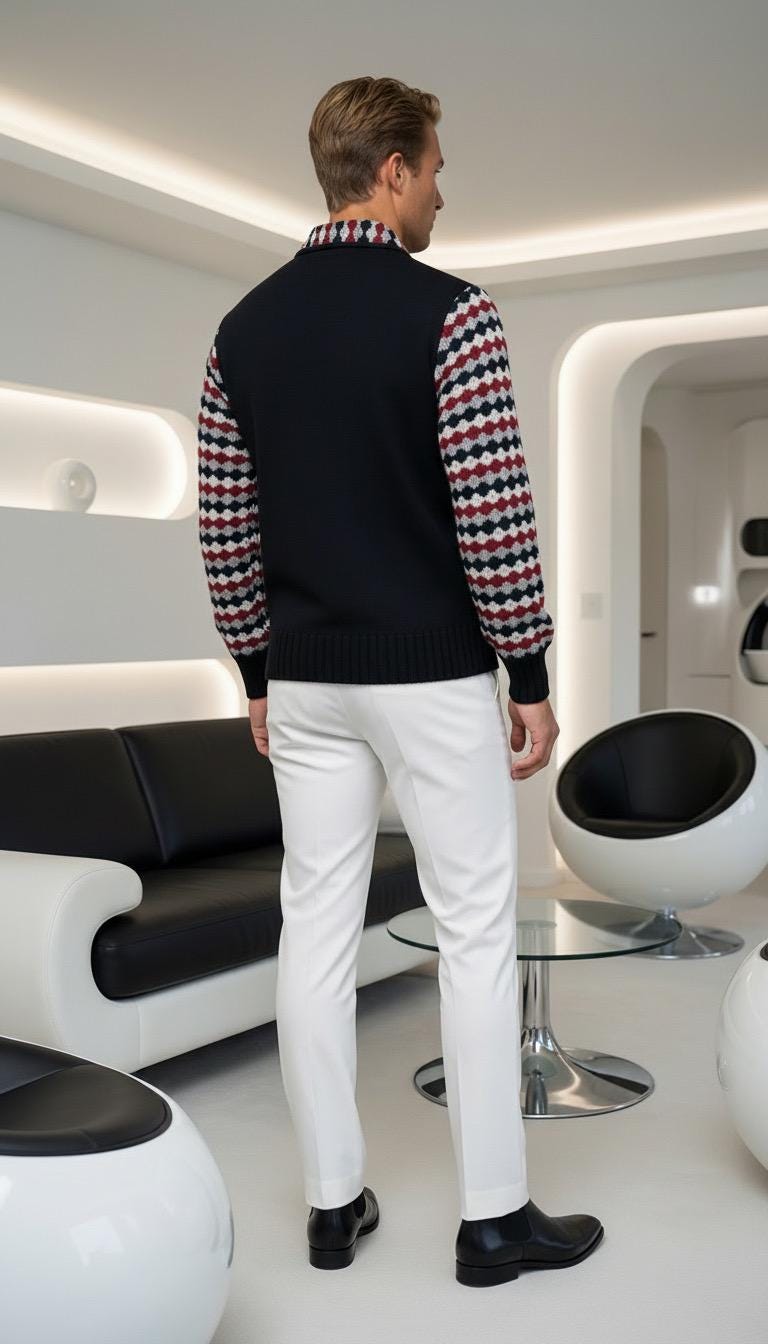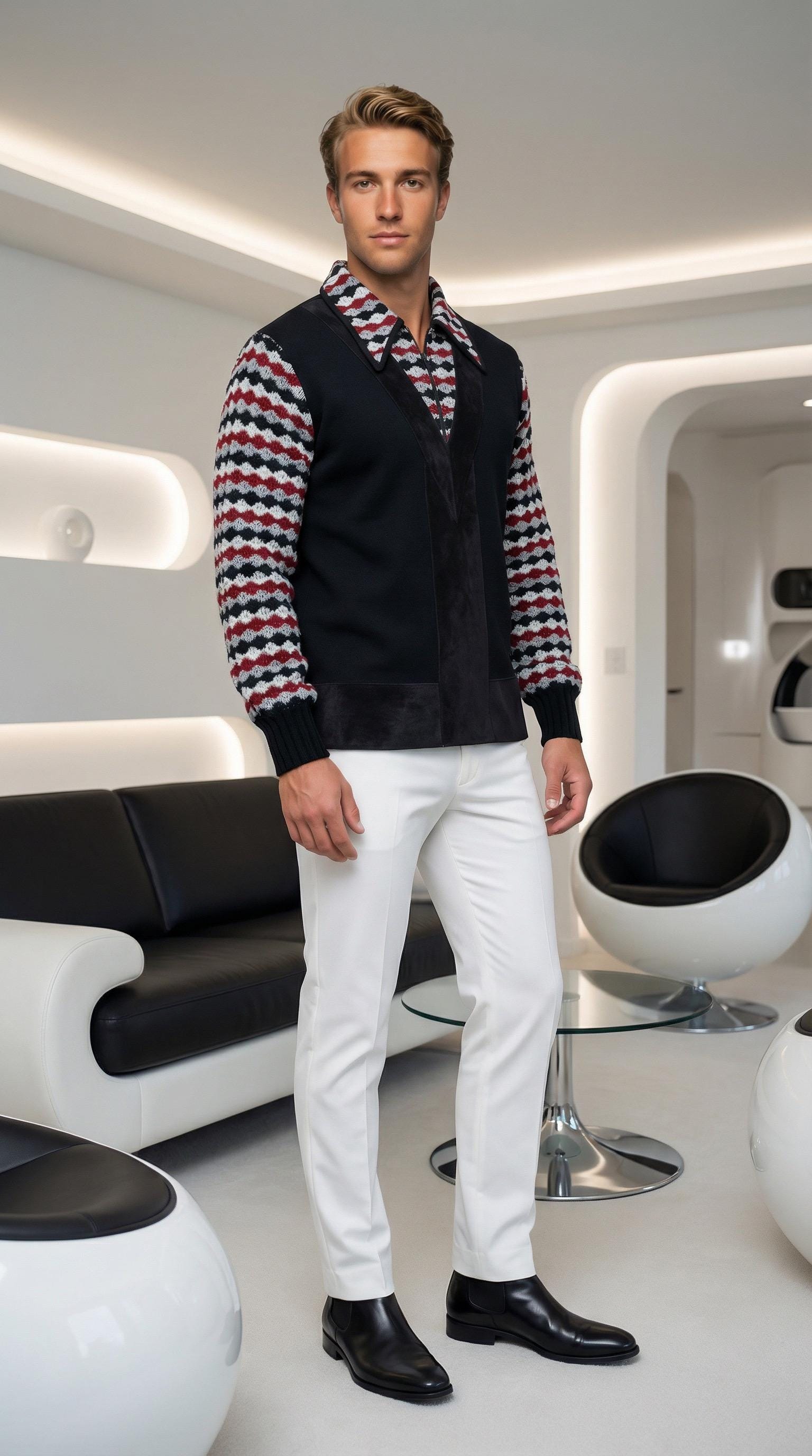 So MOD Black, White, Red Grey Flame Knit Pattern Sleeves.