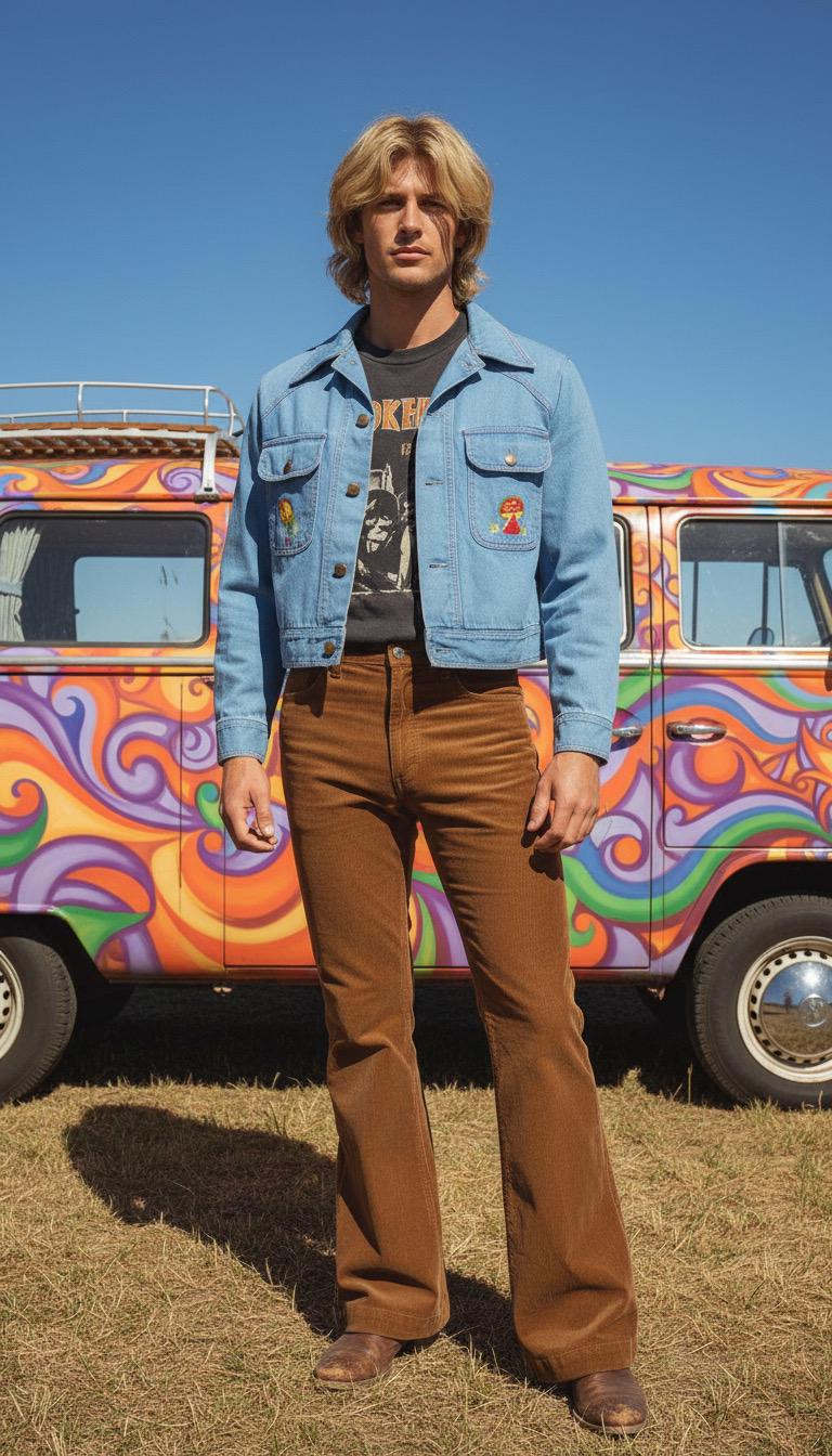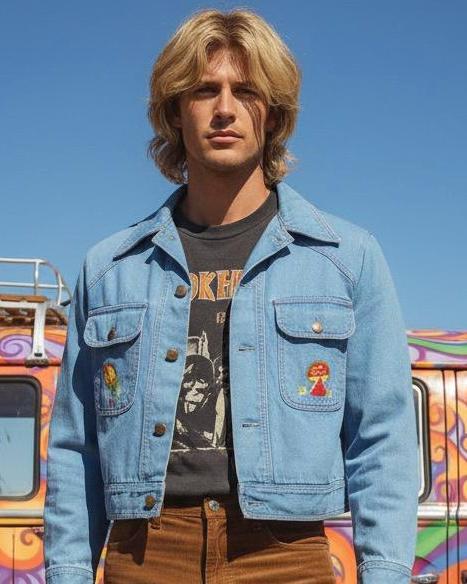 Crazy Cool - Vintage 1970's Men's Campus Embroidered Mushroom Denim Jacket