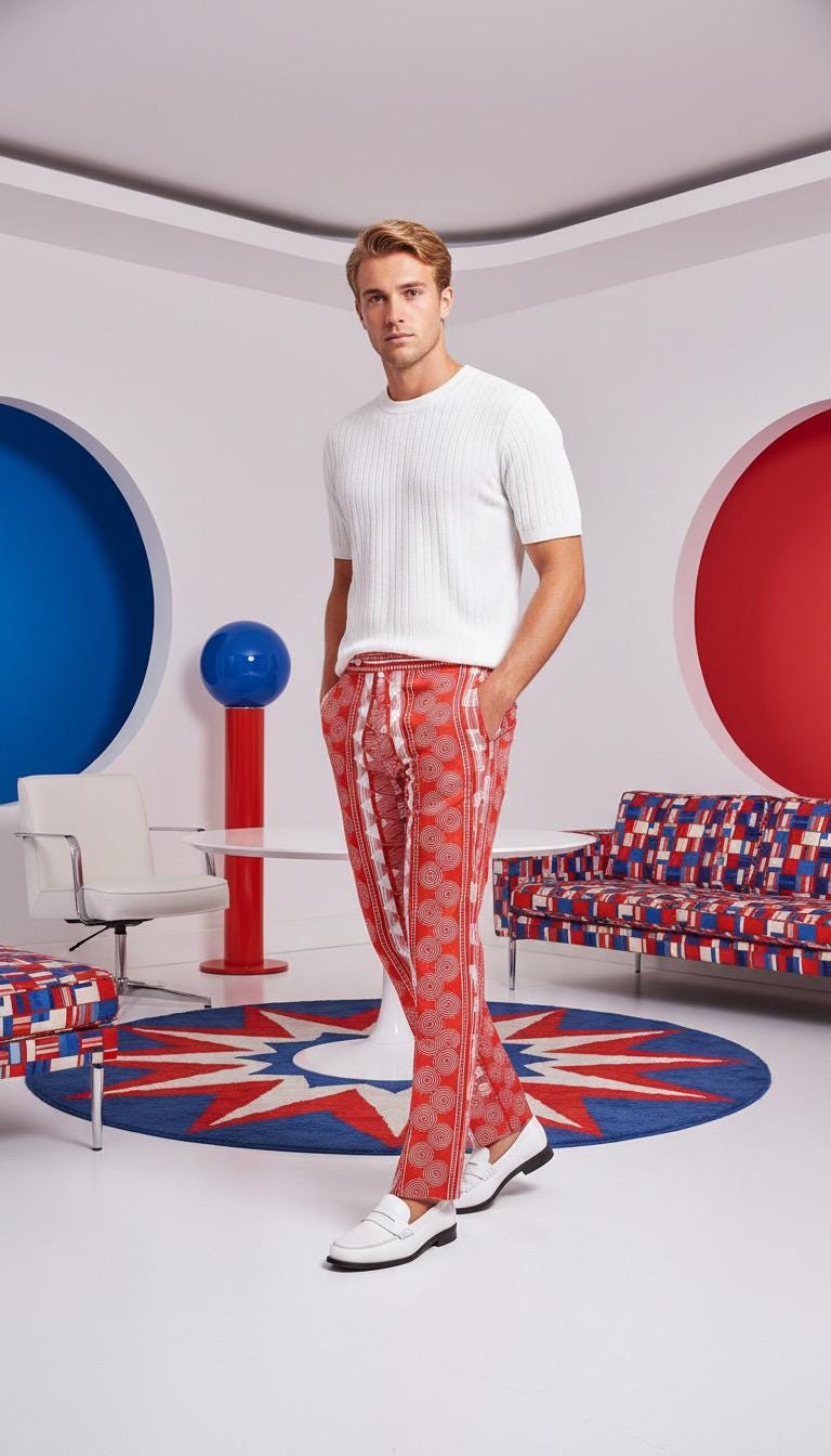 VINTAGE 1960's Men's Lee Stretch Waistband -Red & White Optic Pattern Pants