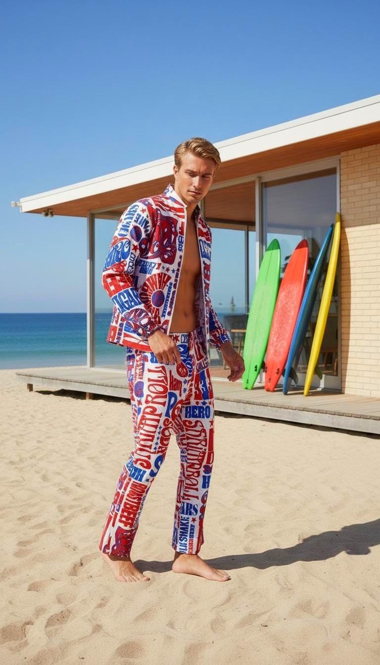 This Iconic 1969 Sears Summer Swimwear Set is known as the "Sign of the Times" Print.