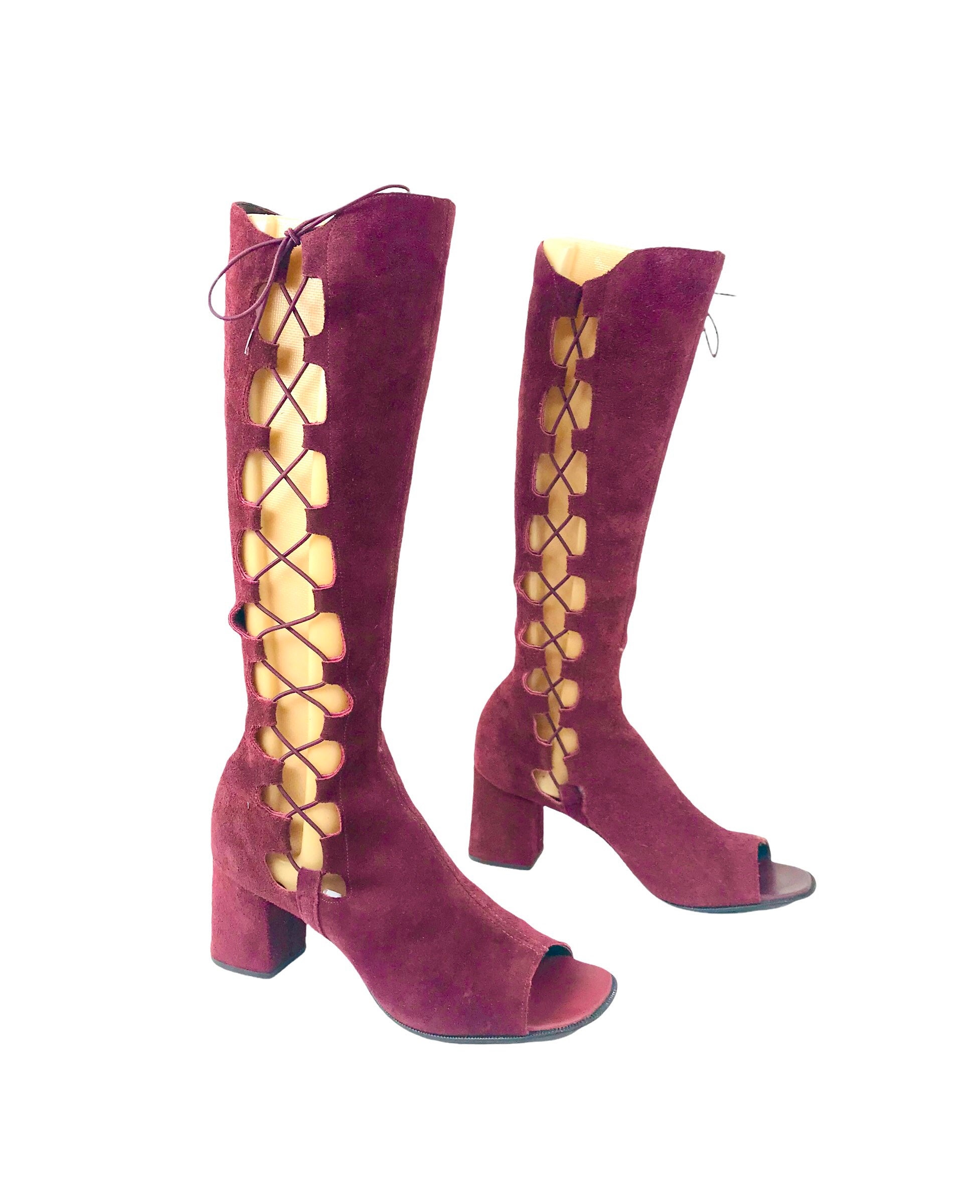 True Vintage 1960's Gladiator Open Toe Boots like Austin Powers Movie. Hard to find Big Size