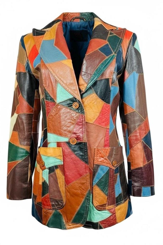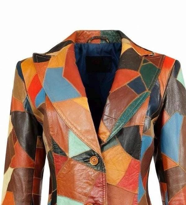 Women’s 70s Colorful Patchwork Coat. Such great colors on this one. This jacket is for the lady with style.